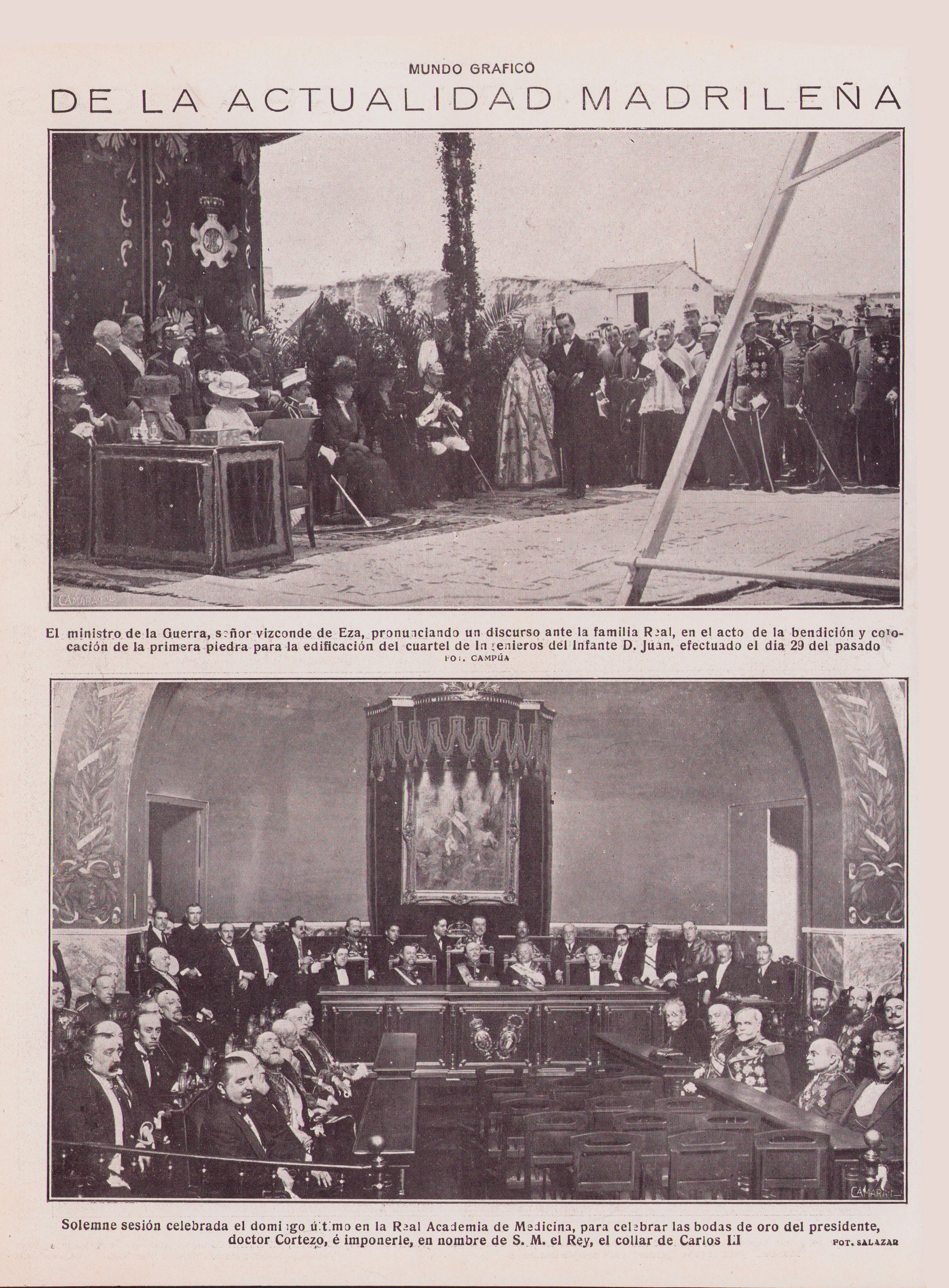 1920 Hoja Revista Madrid Real Academia de Medicina bodas de oro Doctor Cortezo, Collar Carlos III