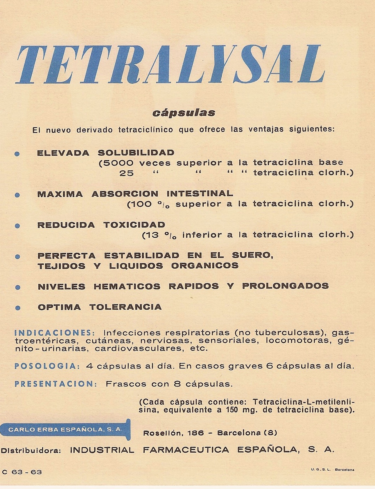 Tetralisal. Encarte en Archivos de la Facultad de Medicina de Madrid, 1963.