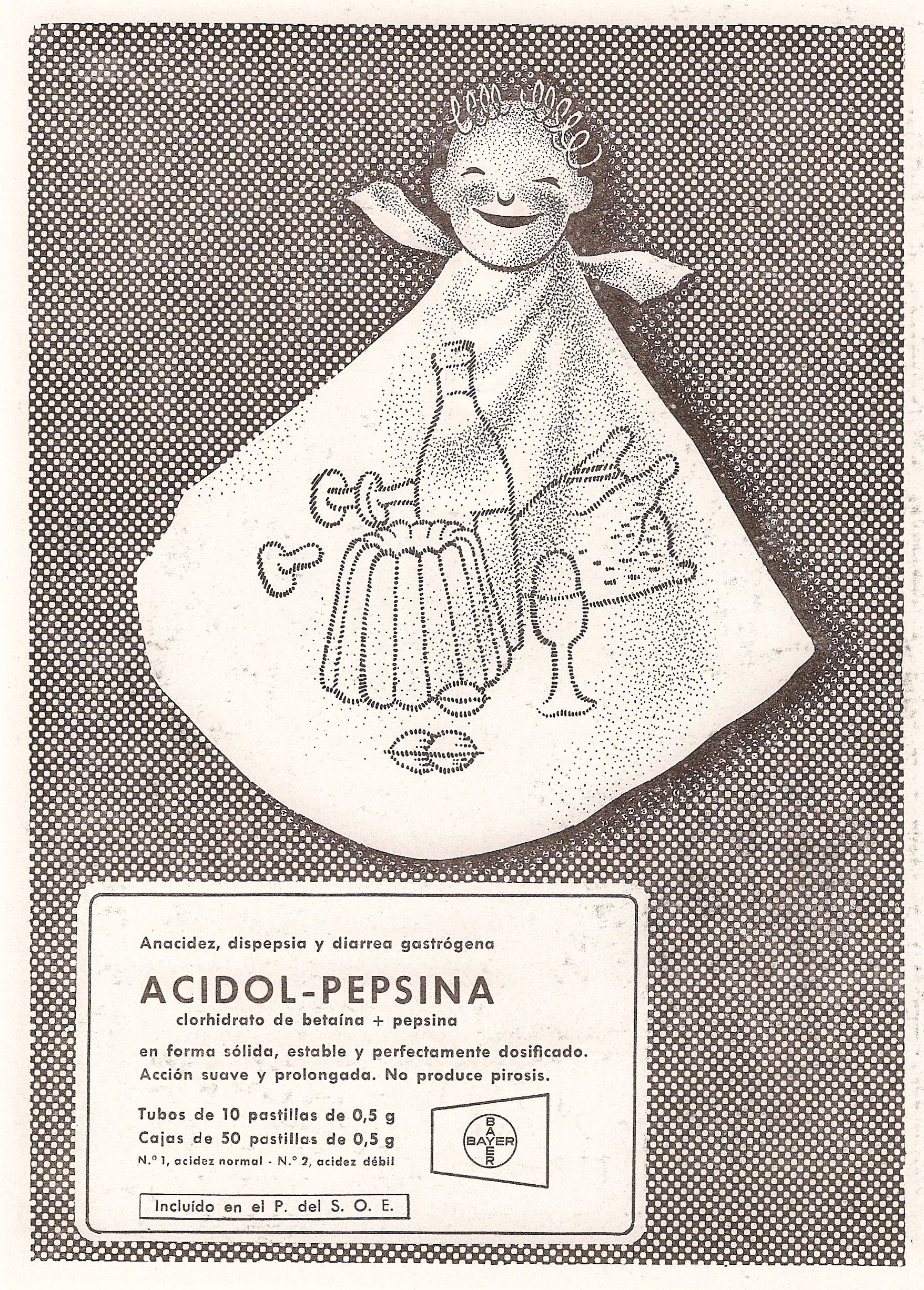 Acidol-Pepsina. Pastillas de Clorhidrato de betaina mas pepsina.1963