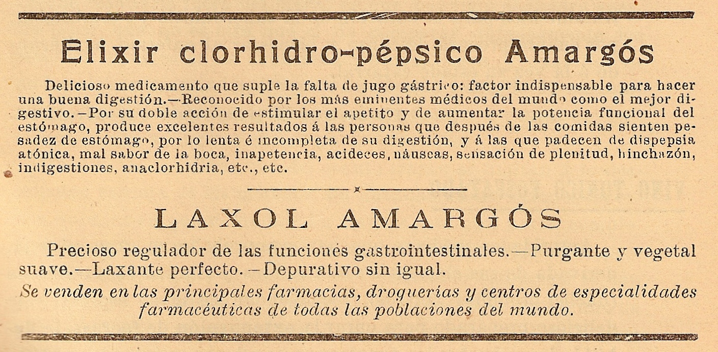 Elixir clorhidro-pépsico. Publicidad frecuente en revistas. 1918.