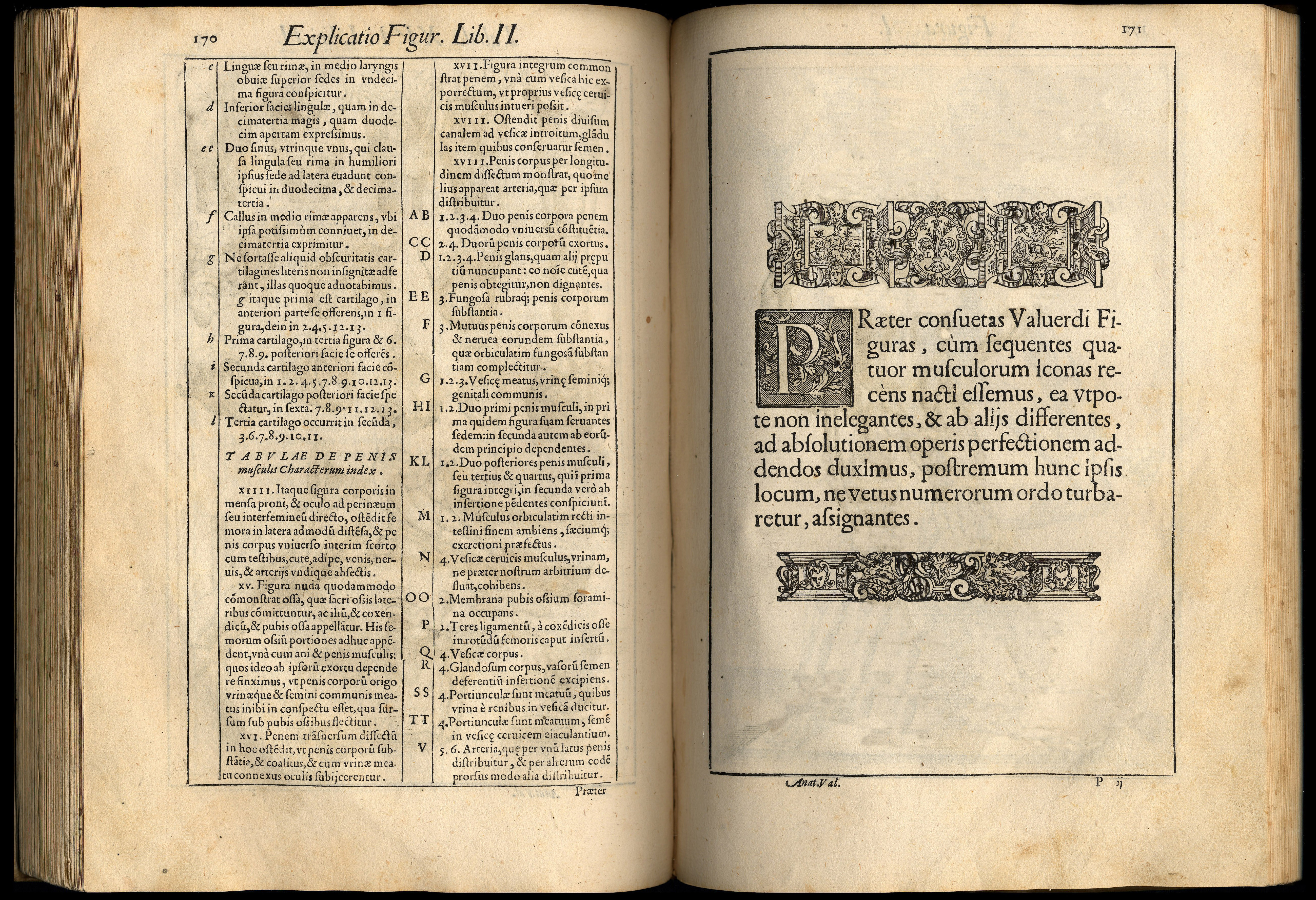 VALVERDE DE HAMUSCO, Juan. – Anatome corporis humani. — Venetiis : studio et industria Iuntarum, 1589. — [34], 340 [i.e. 339] p. : il. ; Fol. [31 cm.]. – Perg.
