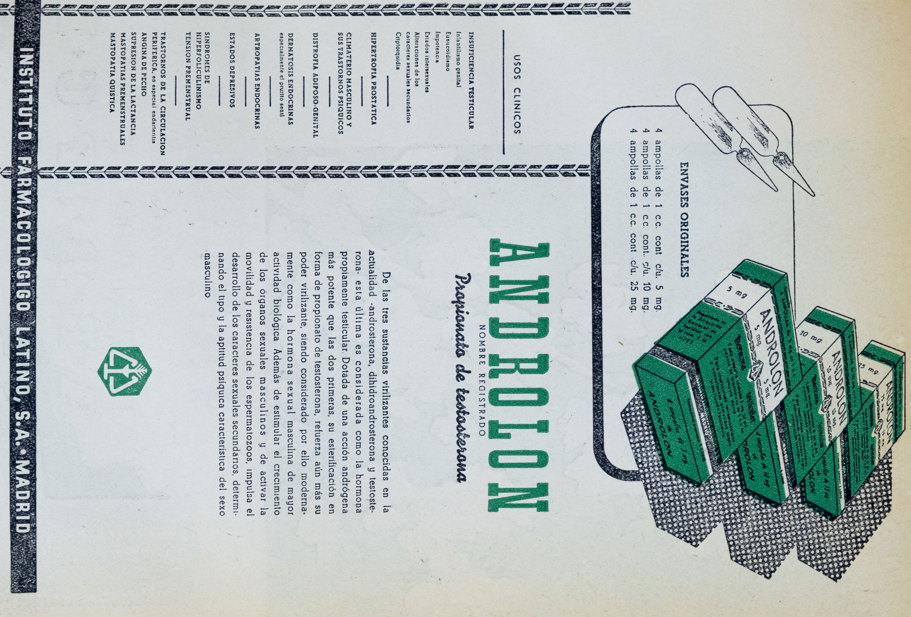 Publicidad Androlon, Revista Medicamenta, 1949