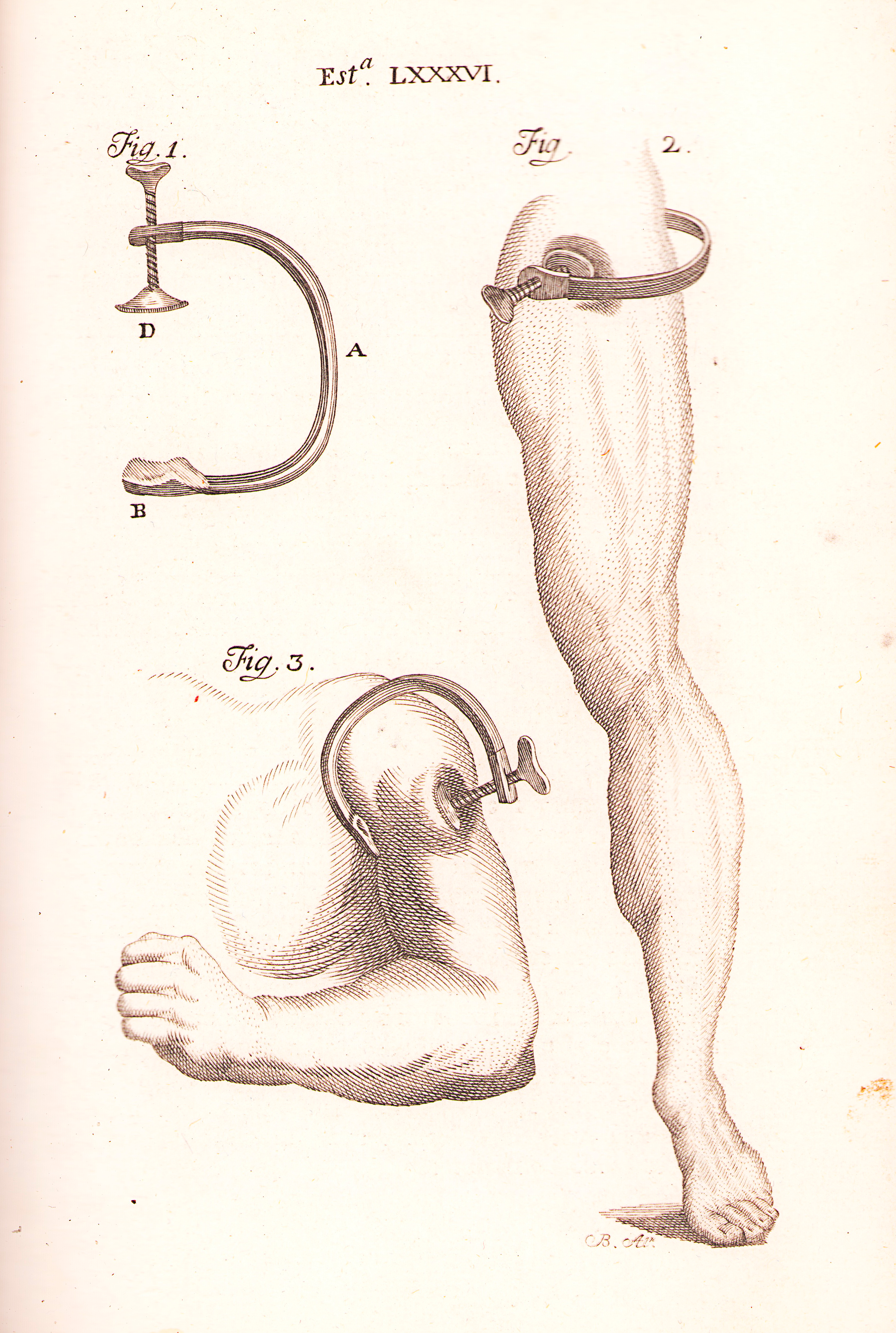 Lámina 86: Aparato ingeniado por Moore para disminuir y precaver el dolor en operaciones de cirugía.
