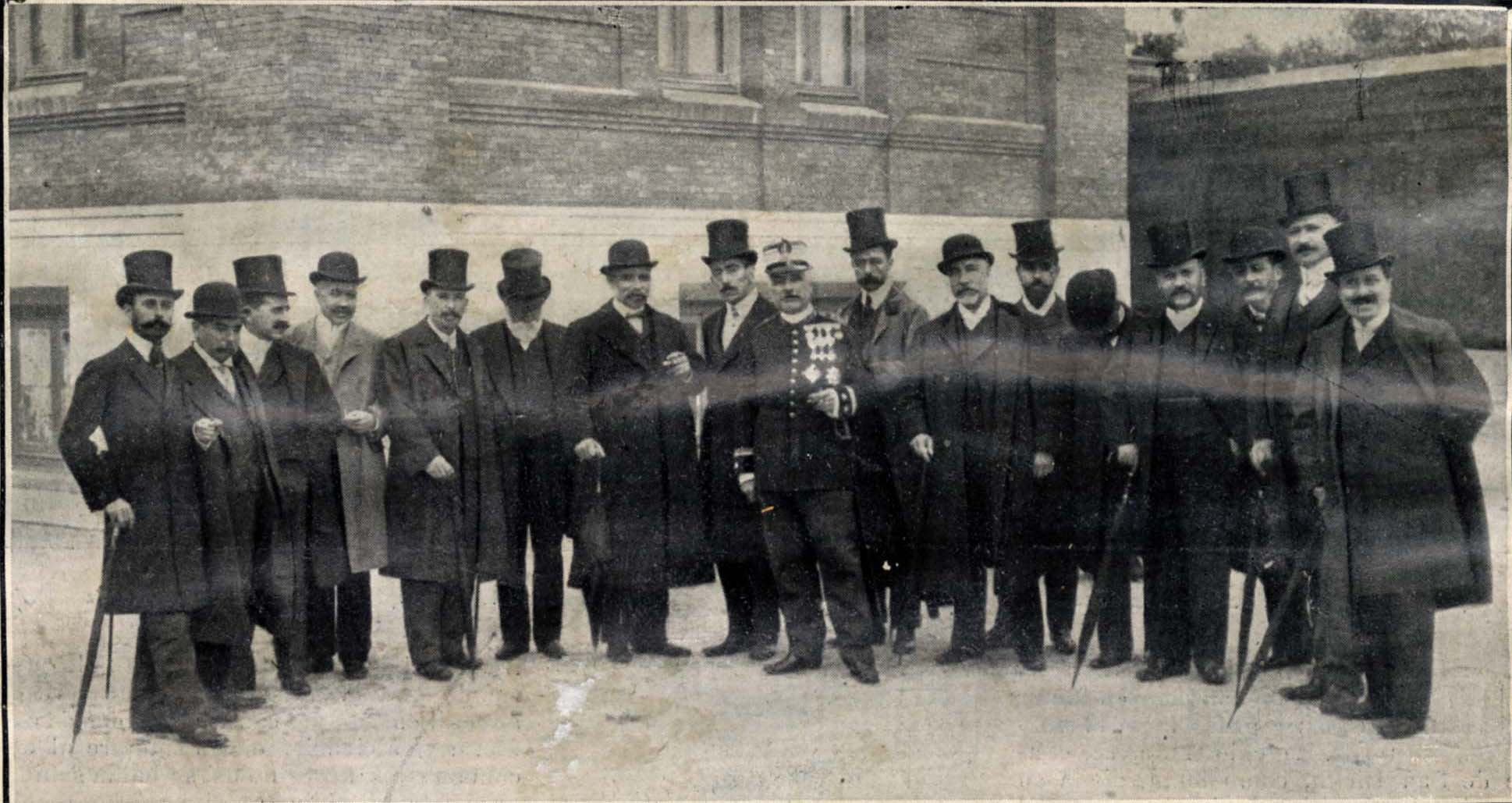Grupo de los asistentes al banquete con que los ilustres doctores que formaron la Asamblea Nacional de la Prensa Médica obsequiaron a los asambleistas de provincias en 1907.