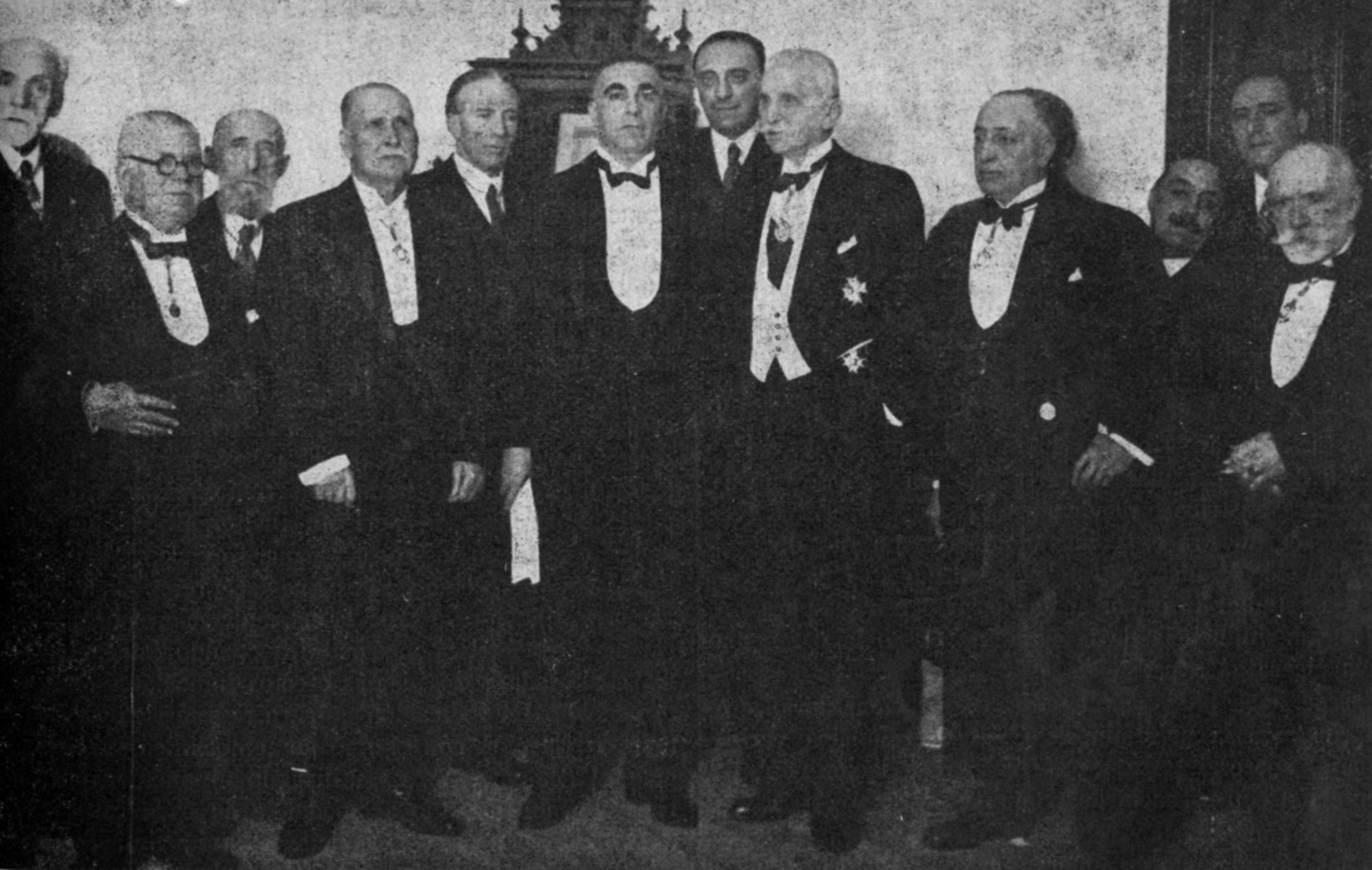 El Conde de Gimeno, acompañado del recipiendario Dr. Vital Aza, momentos antes de serle impuesta la medalla de Académico de número de la Real Academia Nacional de Medicina. El Siglo Médico, 93, 1934, p. 229