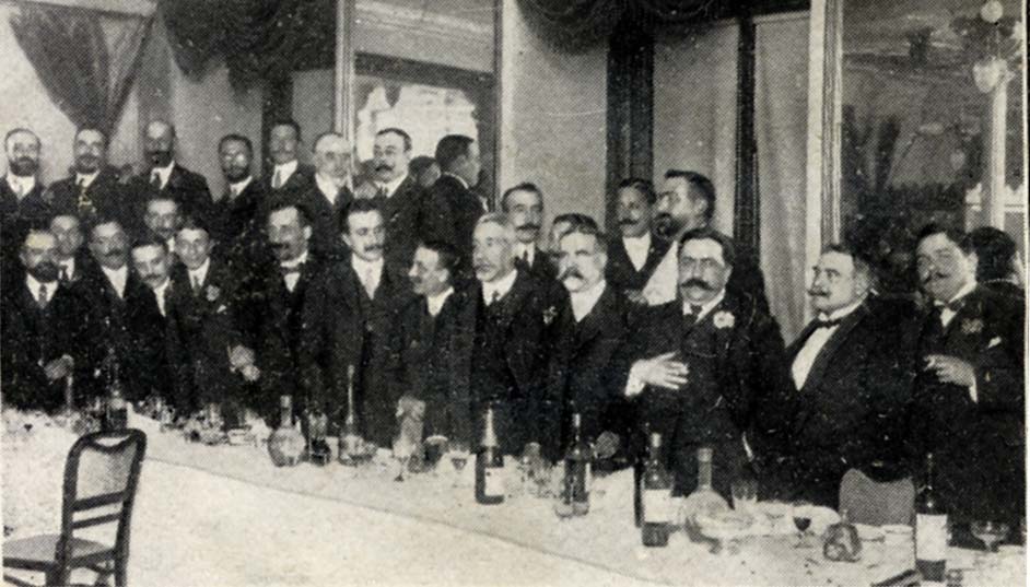Banquete de la clase médica en homenaje al Dr. Eduardo Gereda, médico y escritor, celebrado el 30 de Abril de 1910 en el restaurant Inglés.Entre los asistentes se encontraban los doctores Eléizegui, Cisneros, Pulido (padre e hijo), Tolosa Latour (Manuel y Rafael), Sarabia, Ulecia, Horcasitas, García Tapia, Cifuentes, Bertrtán, Carralero, Roca, Albasanz, Sánchez Calvo, Jiménez Encinas, Gallardo, Durán de Cottes, Coca, Robles, Esquerdo, Gutiérrez Gamero, Del Río, Castresana, Morales Lahoz, García Andrade, Díaz Góngora, Pérez Cano, Estévanez, Perpiñáy Verdes Montenegro .