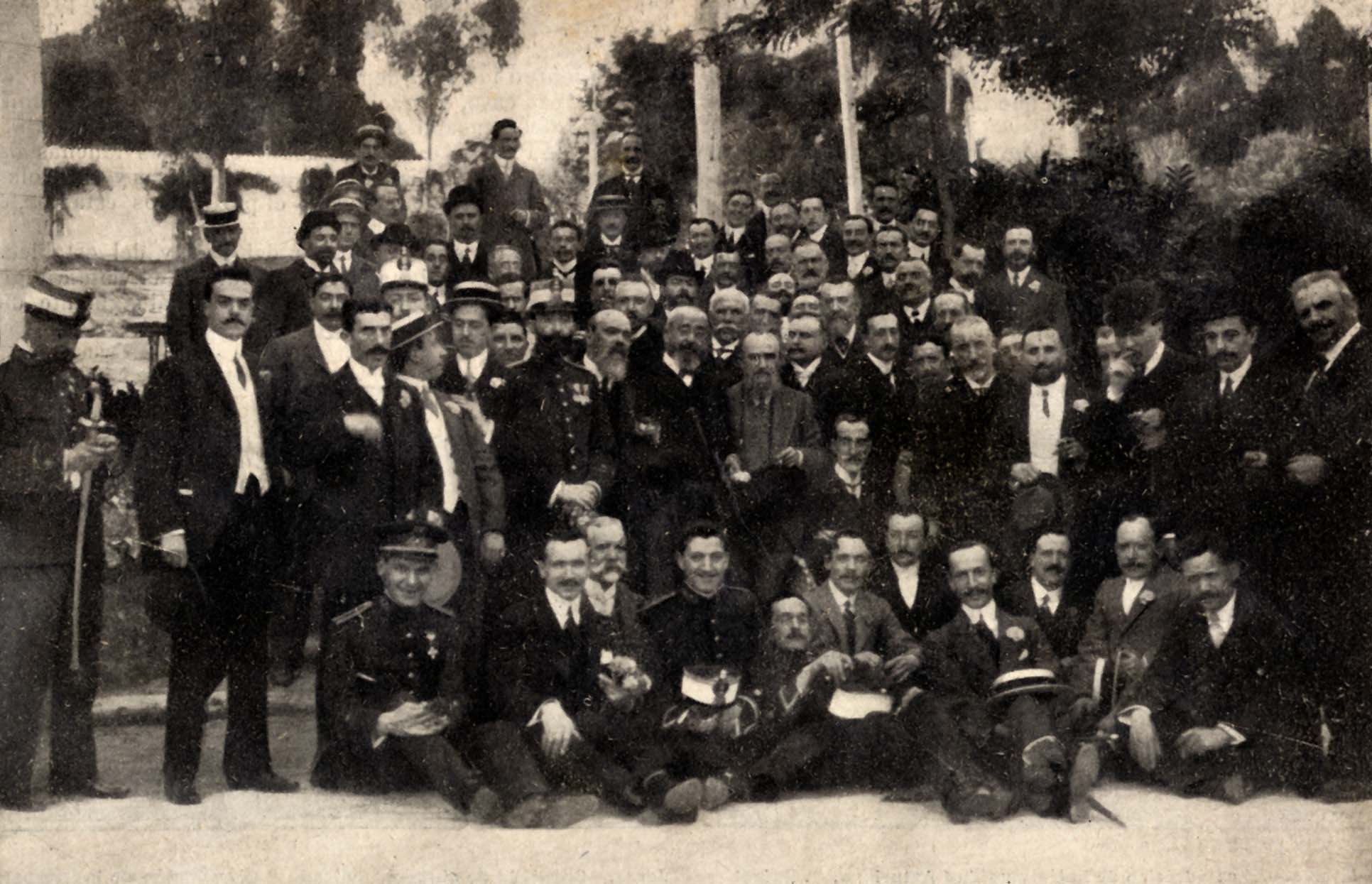 Grupo de asistentes al banquete de confraternidad que celebraron los ilustres profesores del Instituo Rubio en 1909.