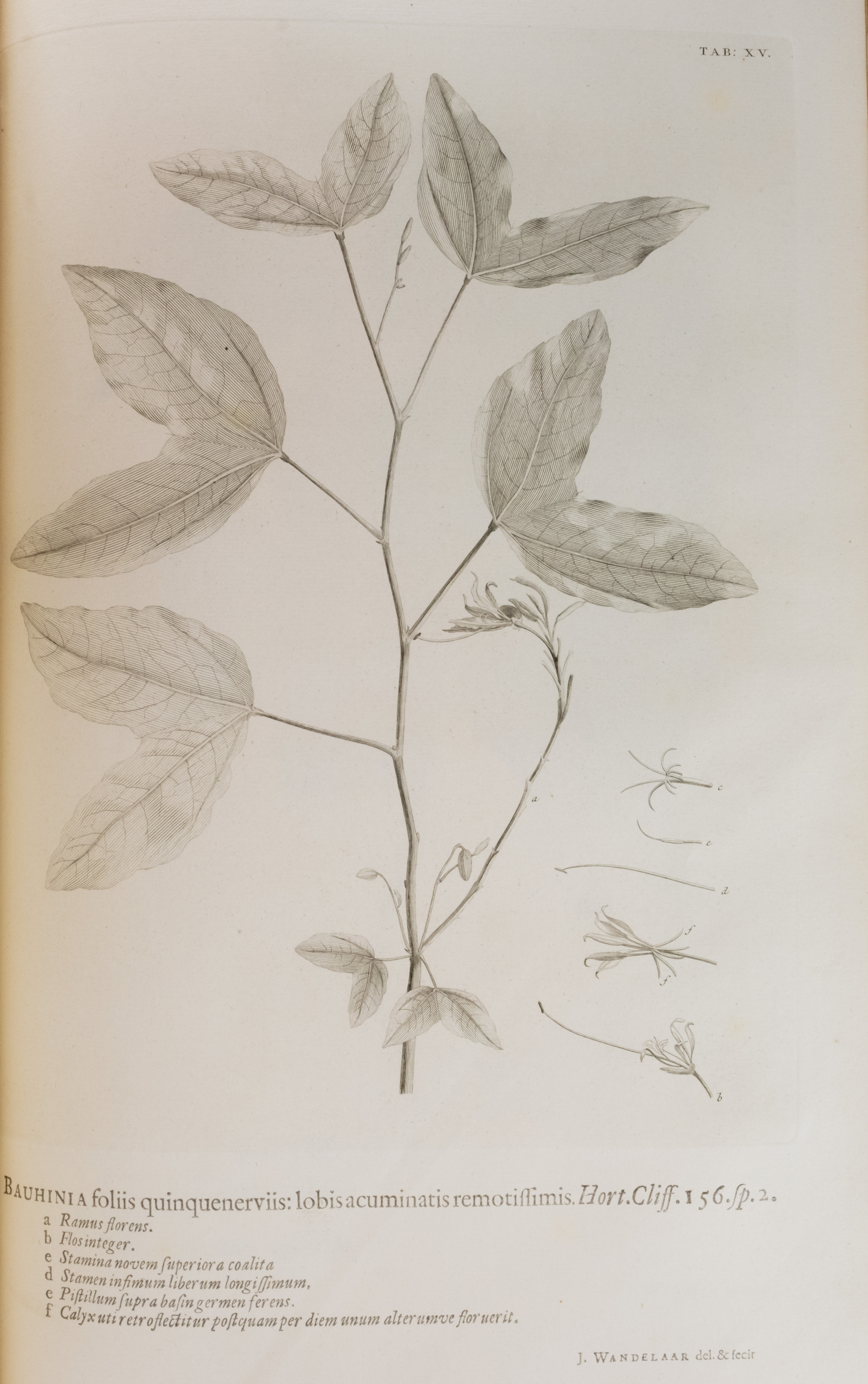 Bauhini a foliis quinquenerviis: lobis acuminatis remotiffimis. Hort.Cliff. 156.5p.2.