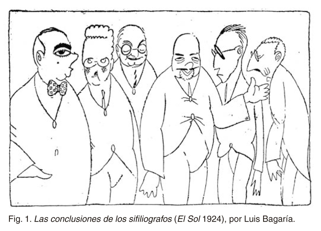 Bejarano, Sáiz de Aja, Humbría, Sánchez Covisa, Navarro Martín y Peyri. Caricatura de Luis Bagaría. Publicada en El Sol, 1924