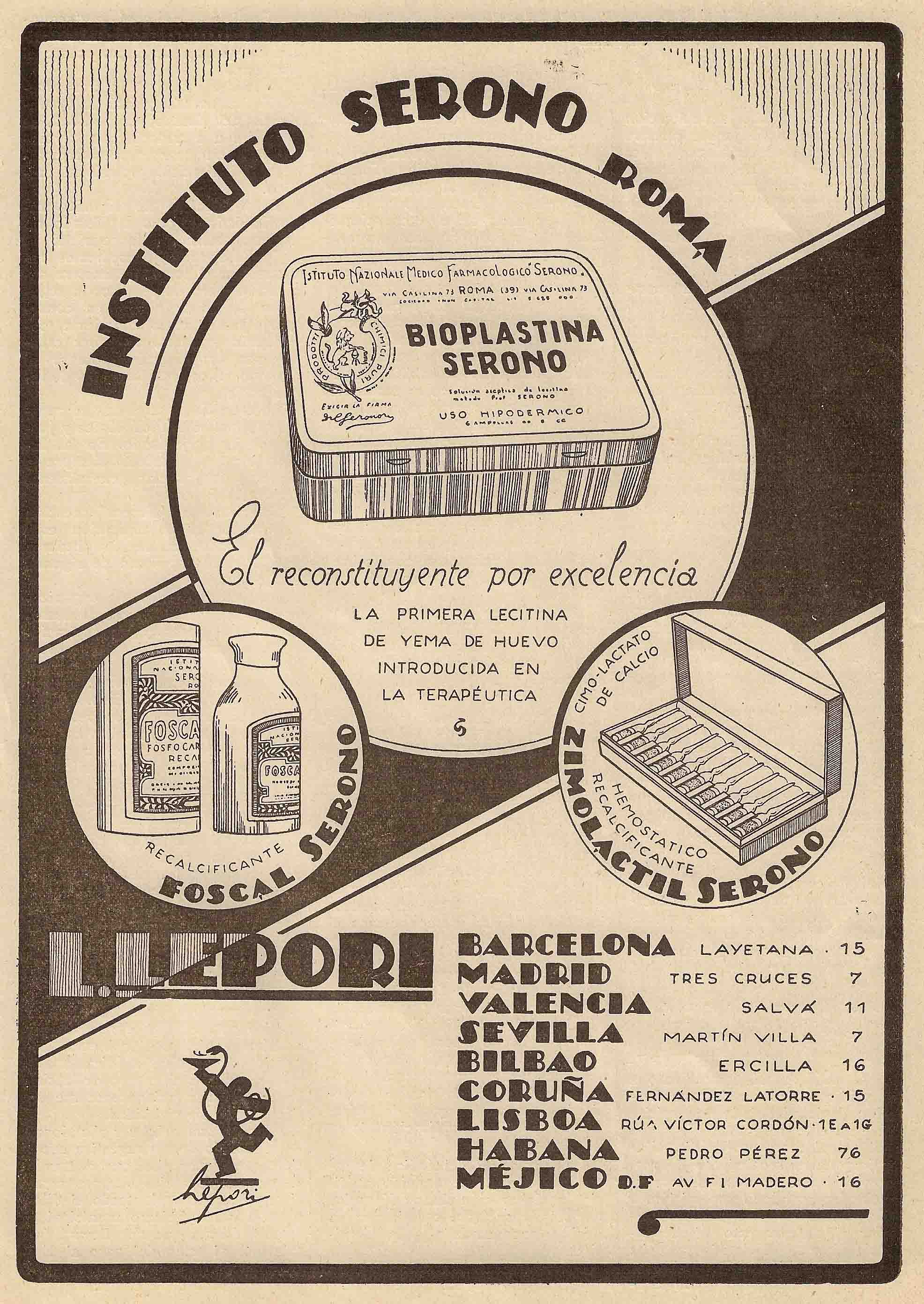 Bioplastina. L. Lepori. La Medicina Ibera, 24 de Enero de 1931 .Instituto Serono.