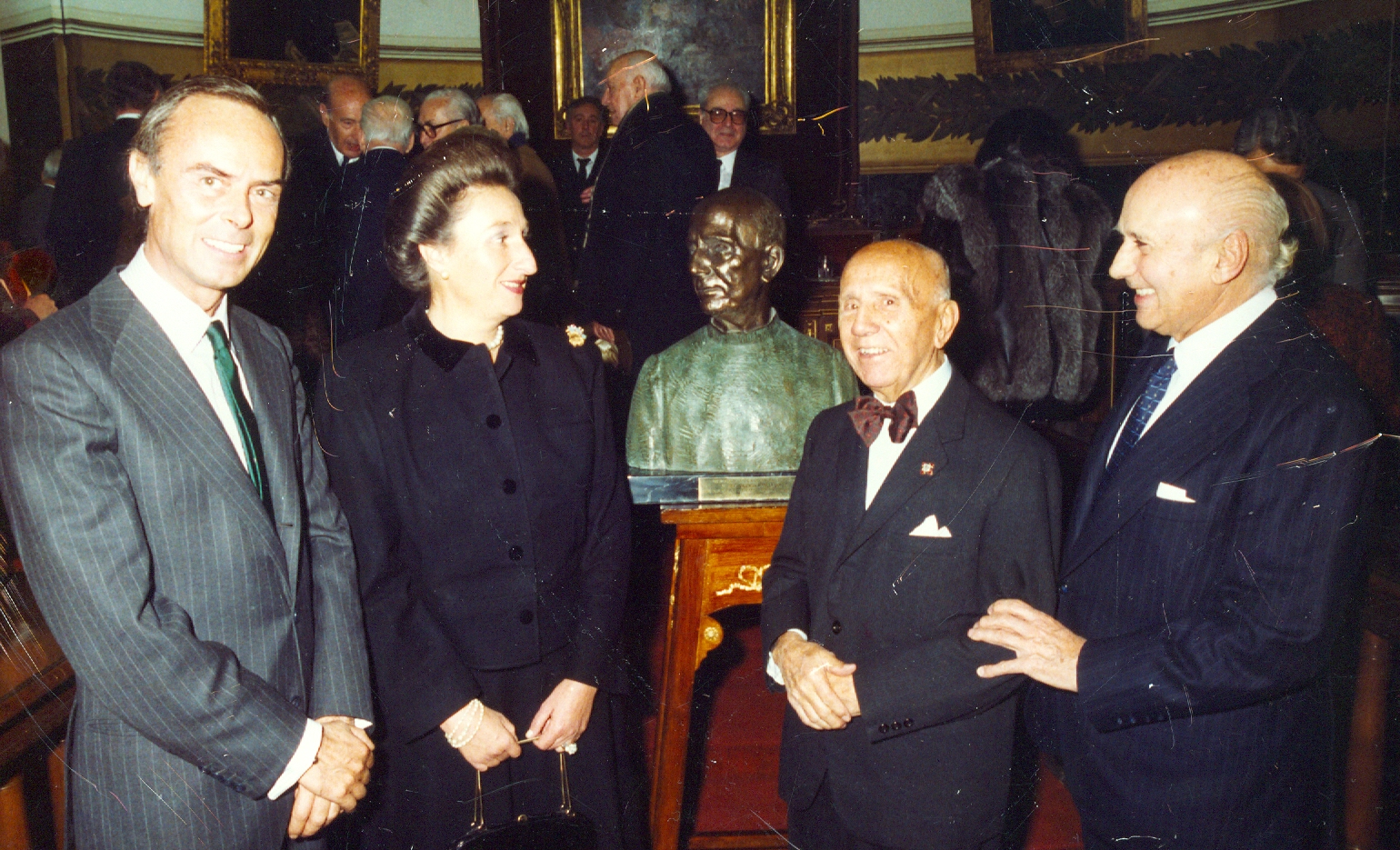 Dr. D. Carlos Zurita, Duque de Soria, Dña. Margarita de Borbón Infanta de España, Prof. D. Valentín Matilla y D. Juan de Ávalos y Taborda. Sesión Extrordinaria con motivo del descrubrimeinto del busto Homenaje al Prof. Matilla. Noviembre 88