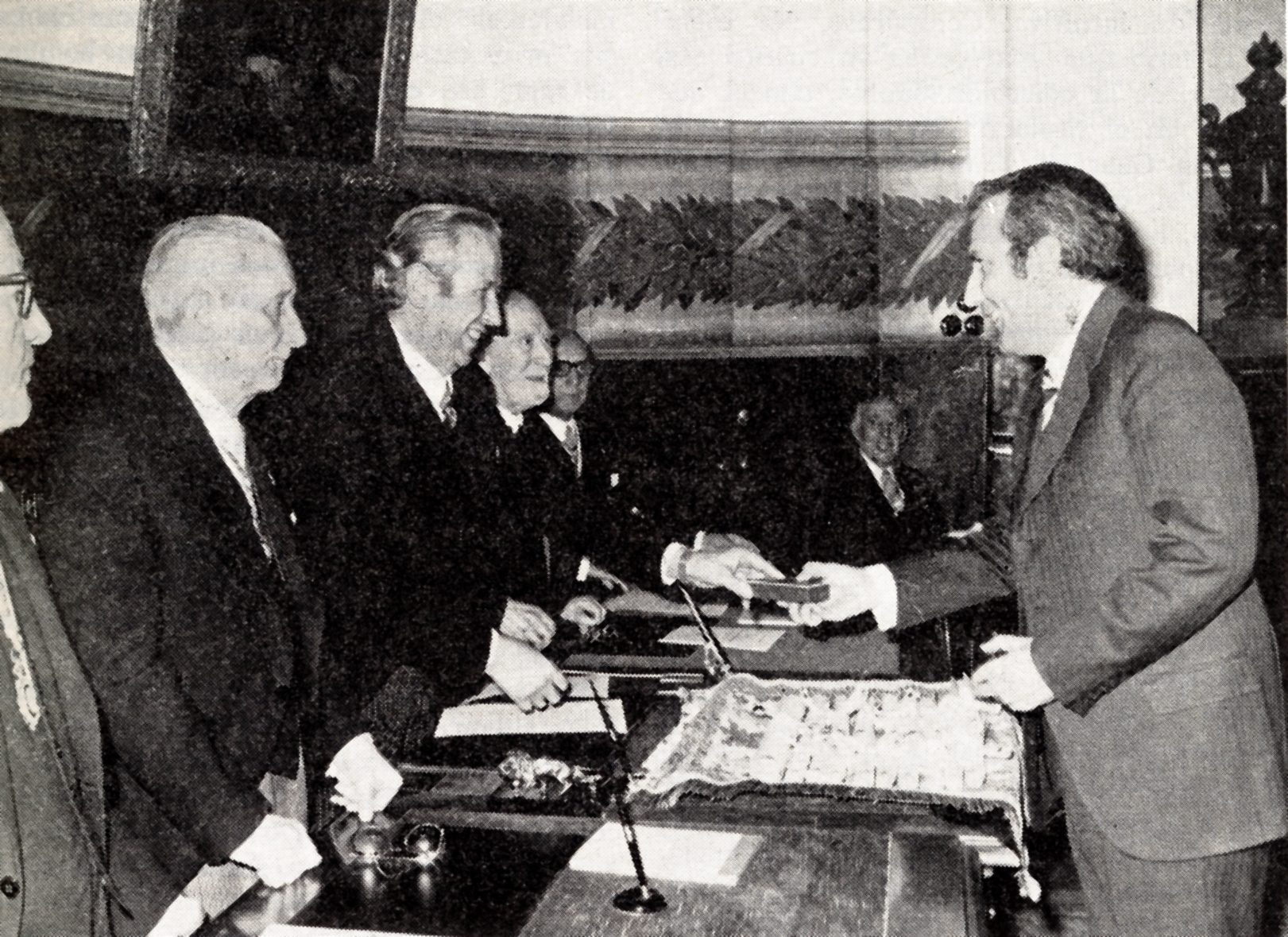 Durante la Solemne sesión de apertura del curso académico de 1976 en la Real Academia Nacional de Medicina, y bajo la presidencia del Subsecretario del Ministerio de Educación, D. Manuel Olivencia Ruiz, le fue entregado el Título como nuevo Académico Correspondiente de la Corporación al Dr. Alfredo Calcedo Ordóñez.