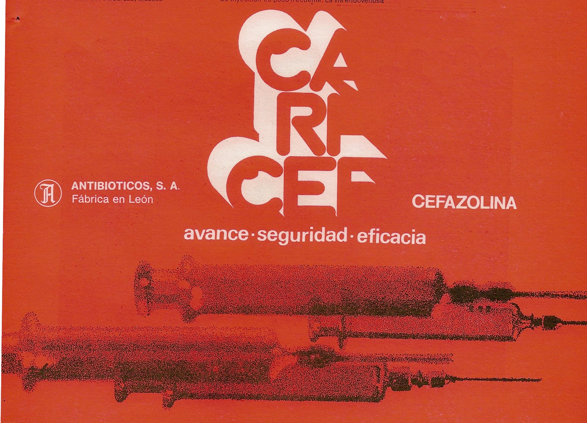 Caricef. Administración intramuscular o intravenosa. Cefazolina, Avance, seguridad, eficacia.Infecciones agudas. Antibióticos, S.A. Leó. Híspalis Médica, marzo 1976.