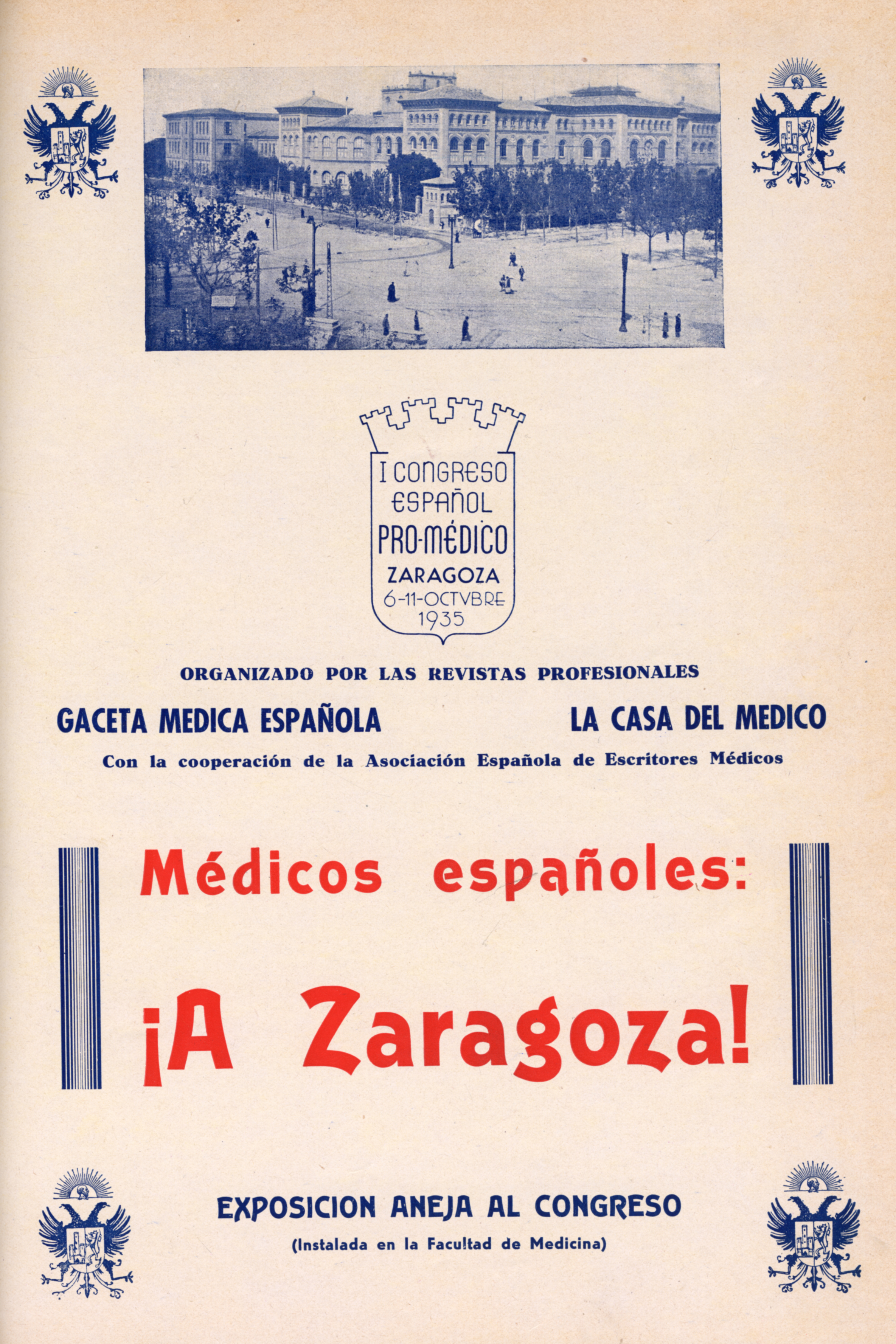 Cartel I Congreso Pro-Médico Español Zaragoza, Octubre 1935