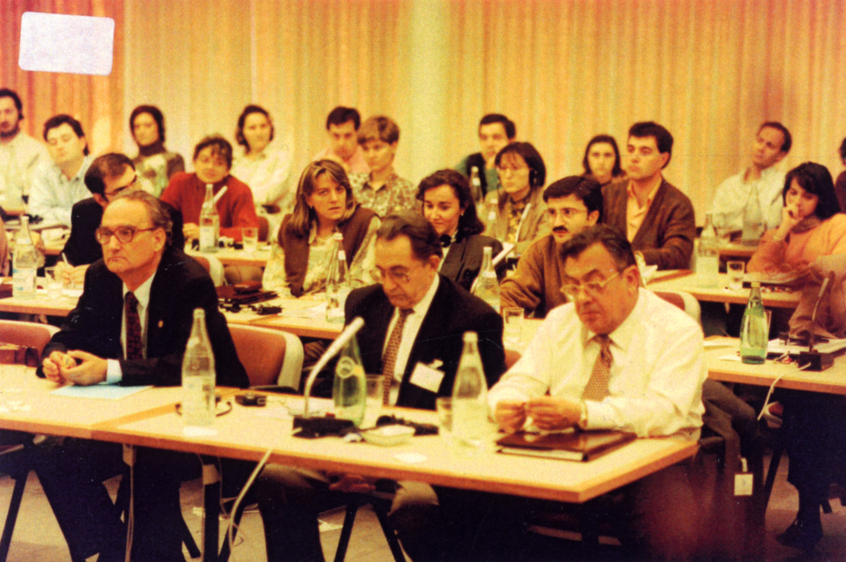 De izq. a dcha. en 1º plano : Dres. Casado de Frías, A. Martínez Valverde (Málaga), Rafael Jiménez (Barcelona).