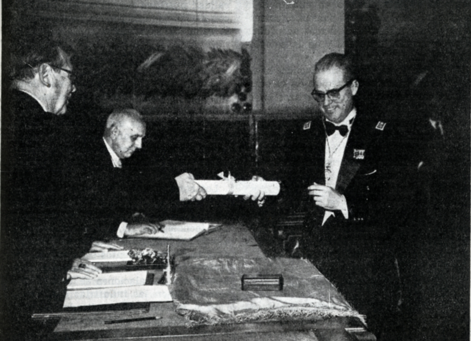 El Presidente de la Real Academia Nacional de Medicina, Prof. Palanca, entrega el Diploma de Académico Numerario al Dr. Casares López.