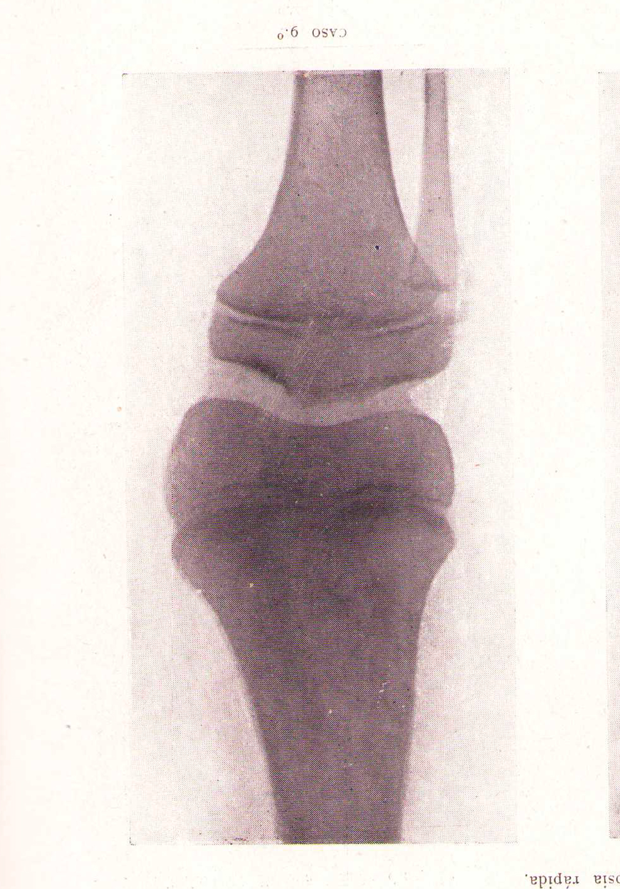 Exploración. Tumoración poco perceptible, pequeña, de poco relieve, dolorosa a presión, no fluctuante, no aumento del calor local. Piel norma, sin adherirse a la tumoración, Movilidad de rodilla disminuida. Wassermann y similares: Recuentos, 3.500 000 H. 12.000 L..