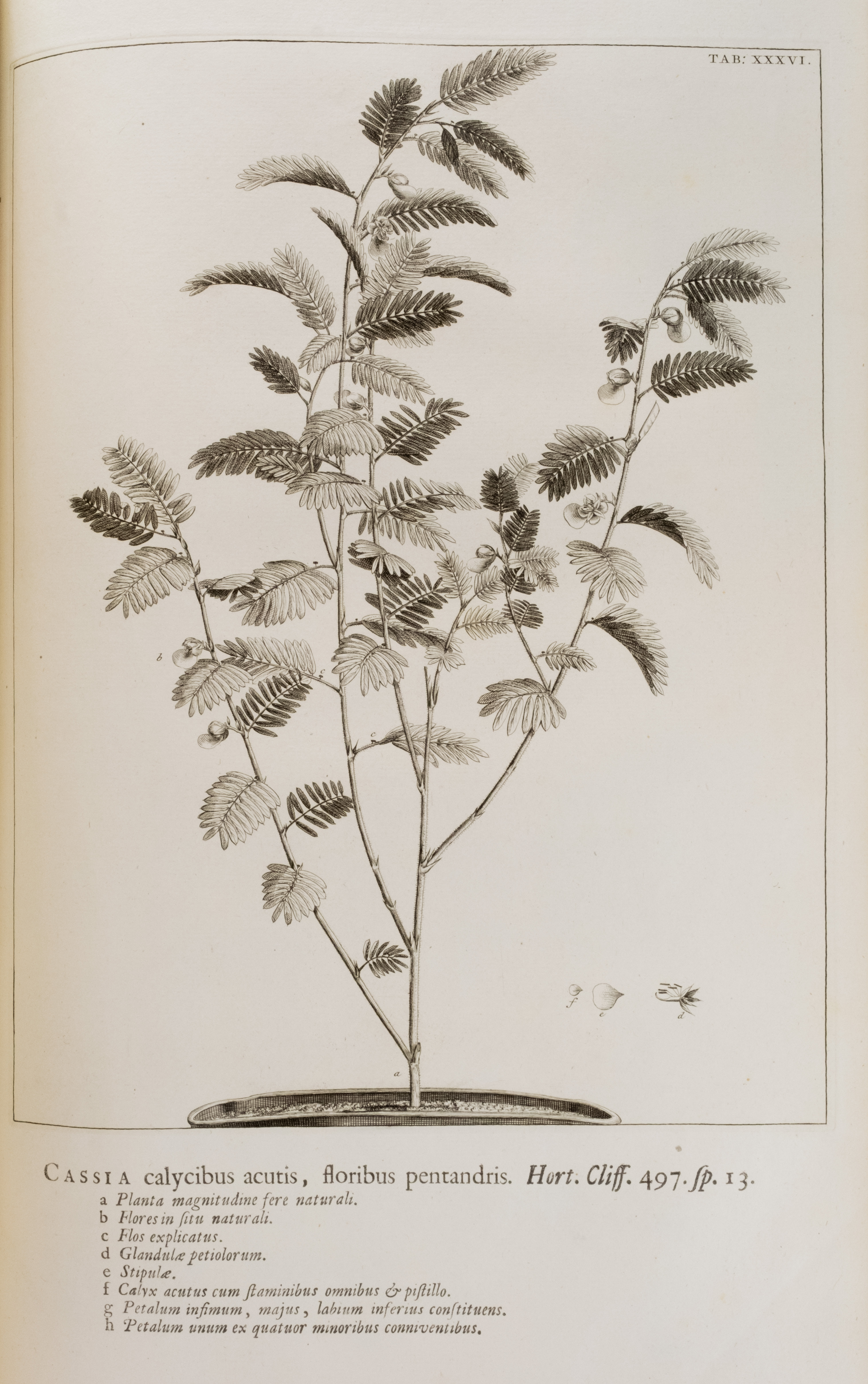 Cassia calycibus acutis, aoribus pentandris. Hort. Cliff. 497.Sp. 13.
