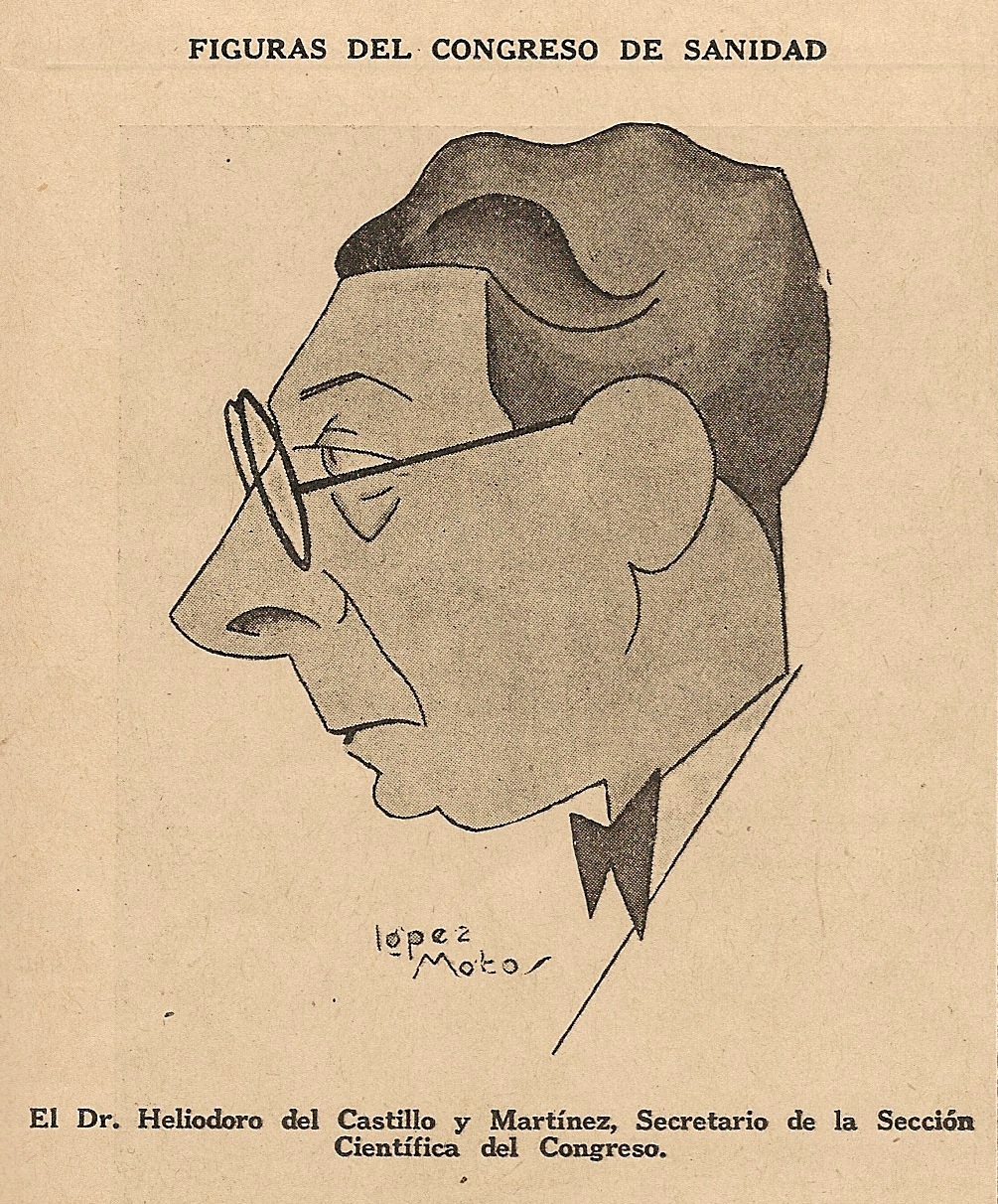 Castillo y Martínez, Heliodoro del El Siglo Médico, 1934. Caricatura de López Motos