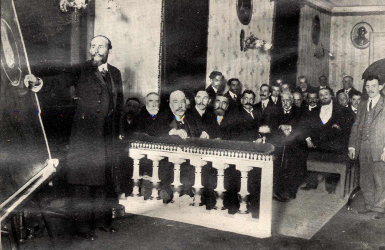 El Dr. Baldomero Castresana dando una conferencia acerca de quinientos operados por él de cataratas en cinco años. La conferencia fue pronunciada en el Colegio de Médicos de Madrid en Marzo de 1910.
