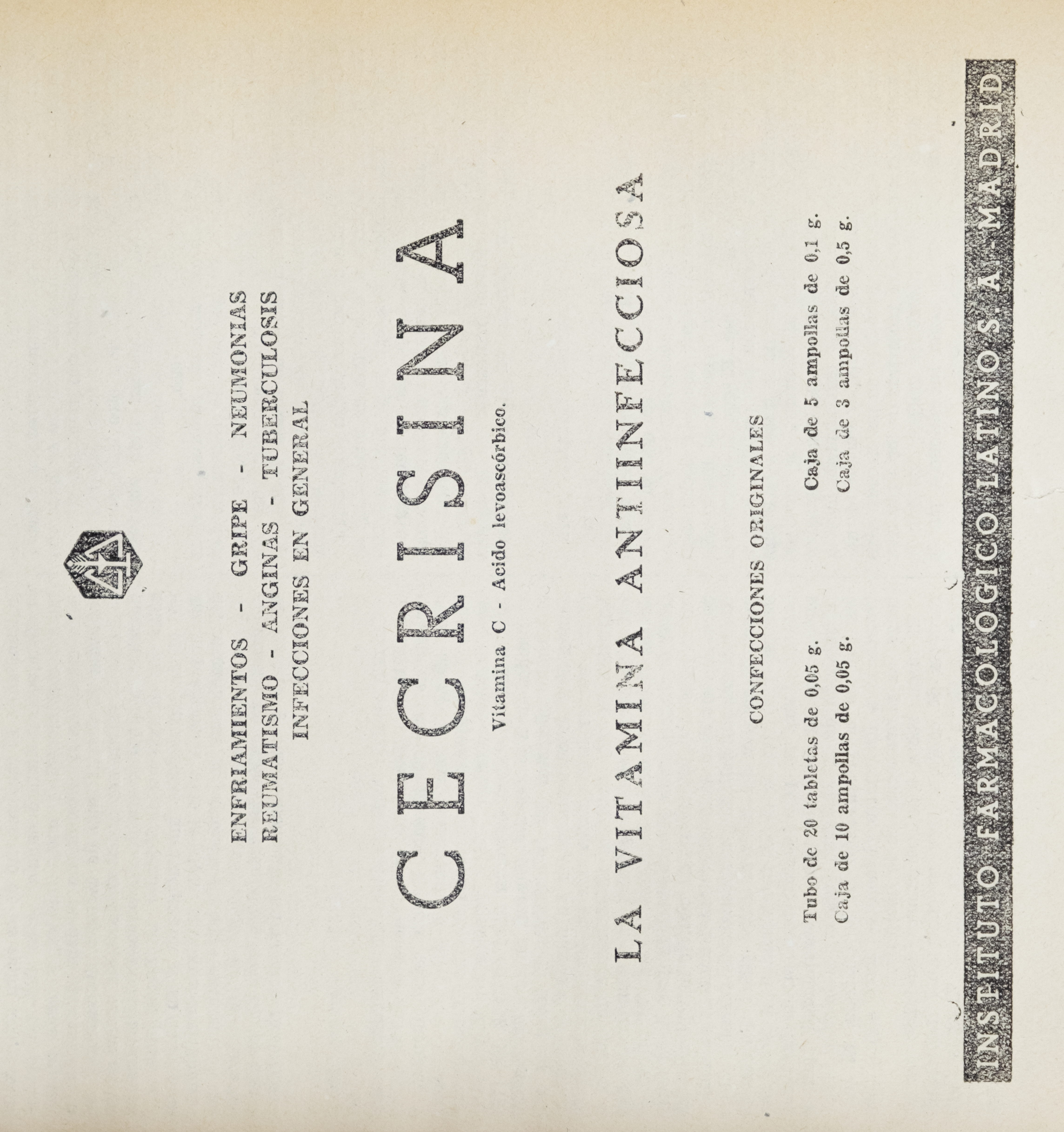 Cecrisina, Medicamenta, 1949