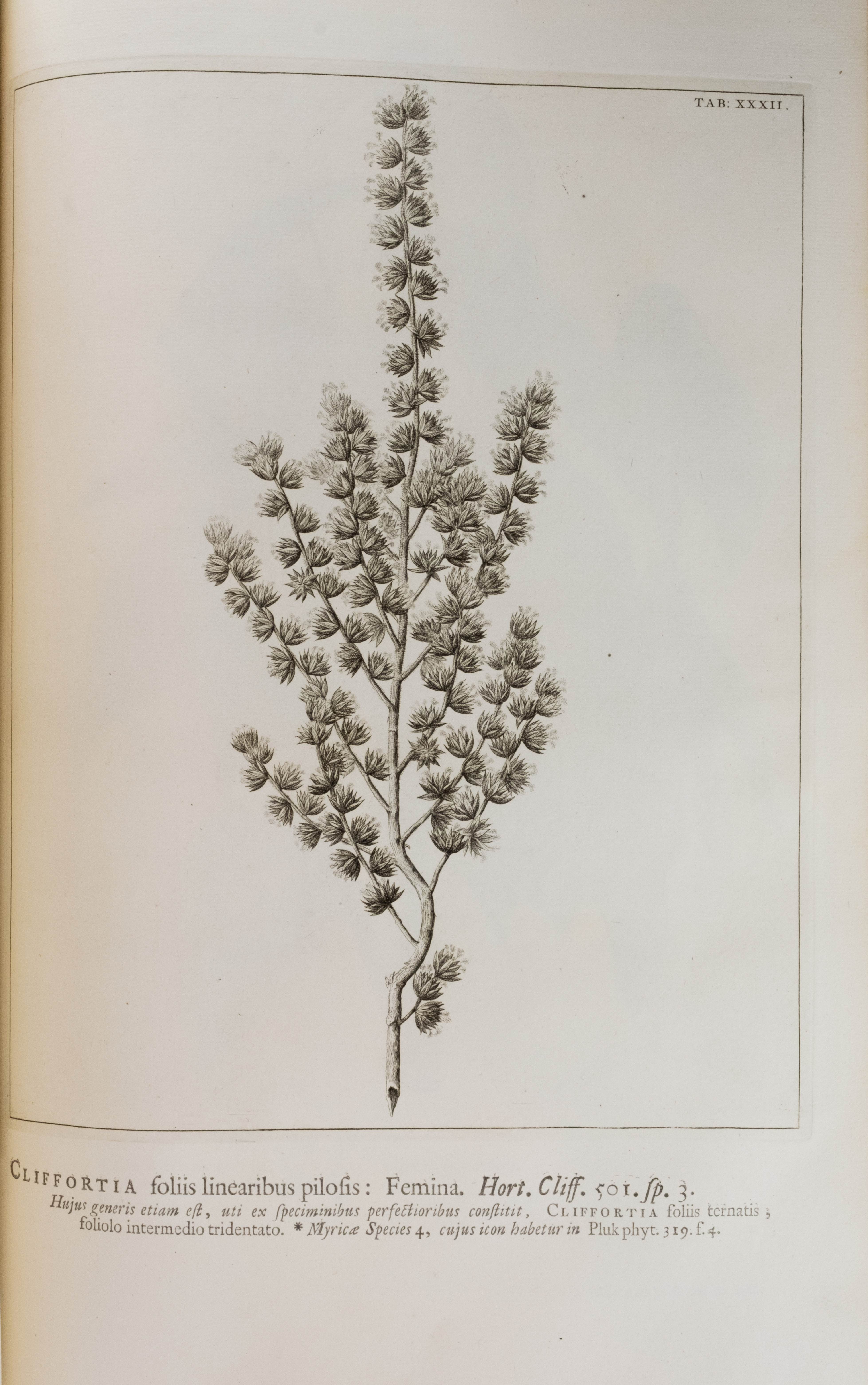 Ciffortia foliis linearibus pilosis: femina. Hort. Cliff.