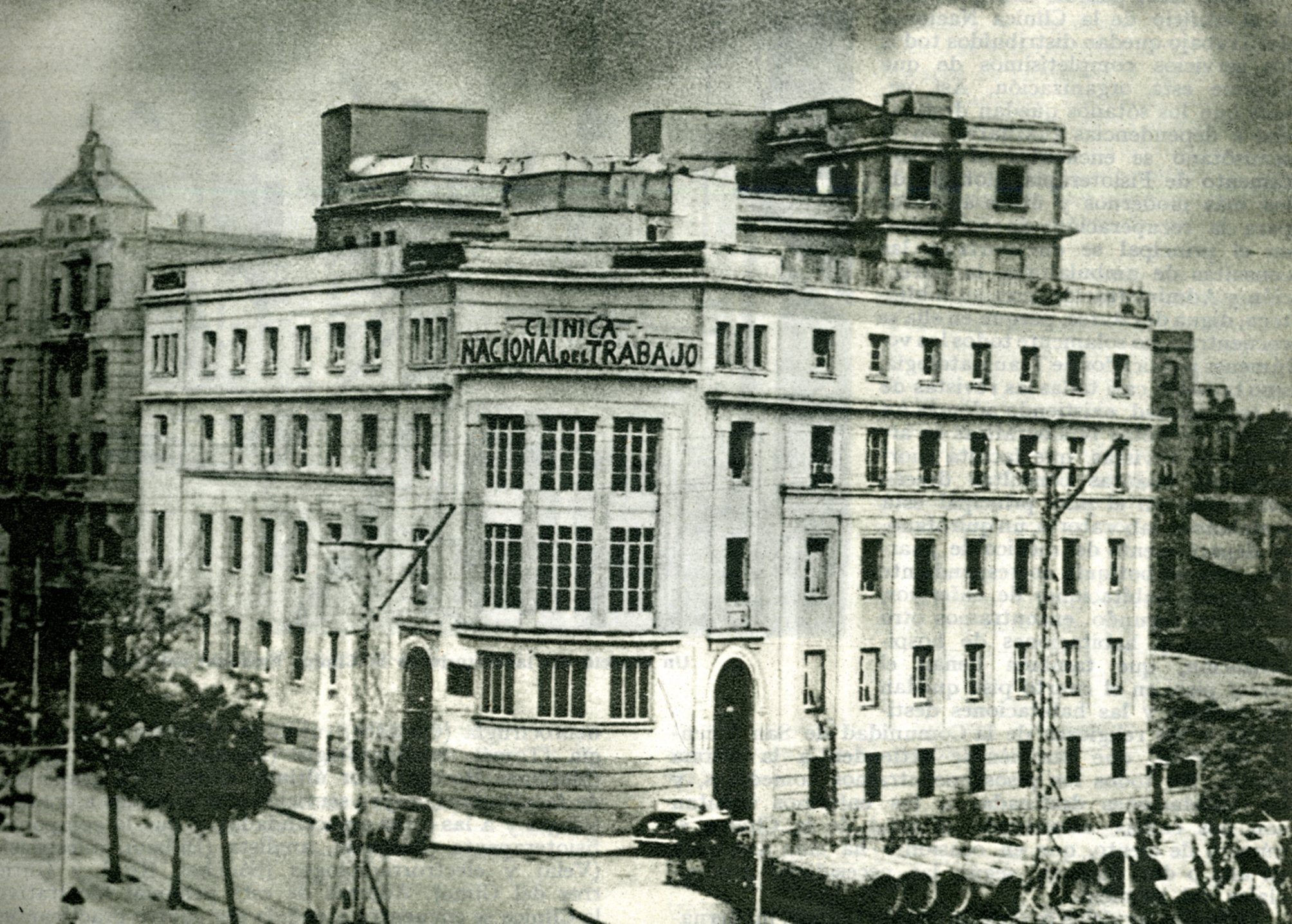 Exterior de la Clínica Nacional del Trabajo, situada en la Avenida de la Reina Victoria de Madrid. Consejo General de Colegios Médicos de España, 66, Enero 1953