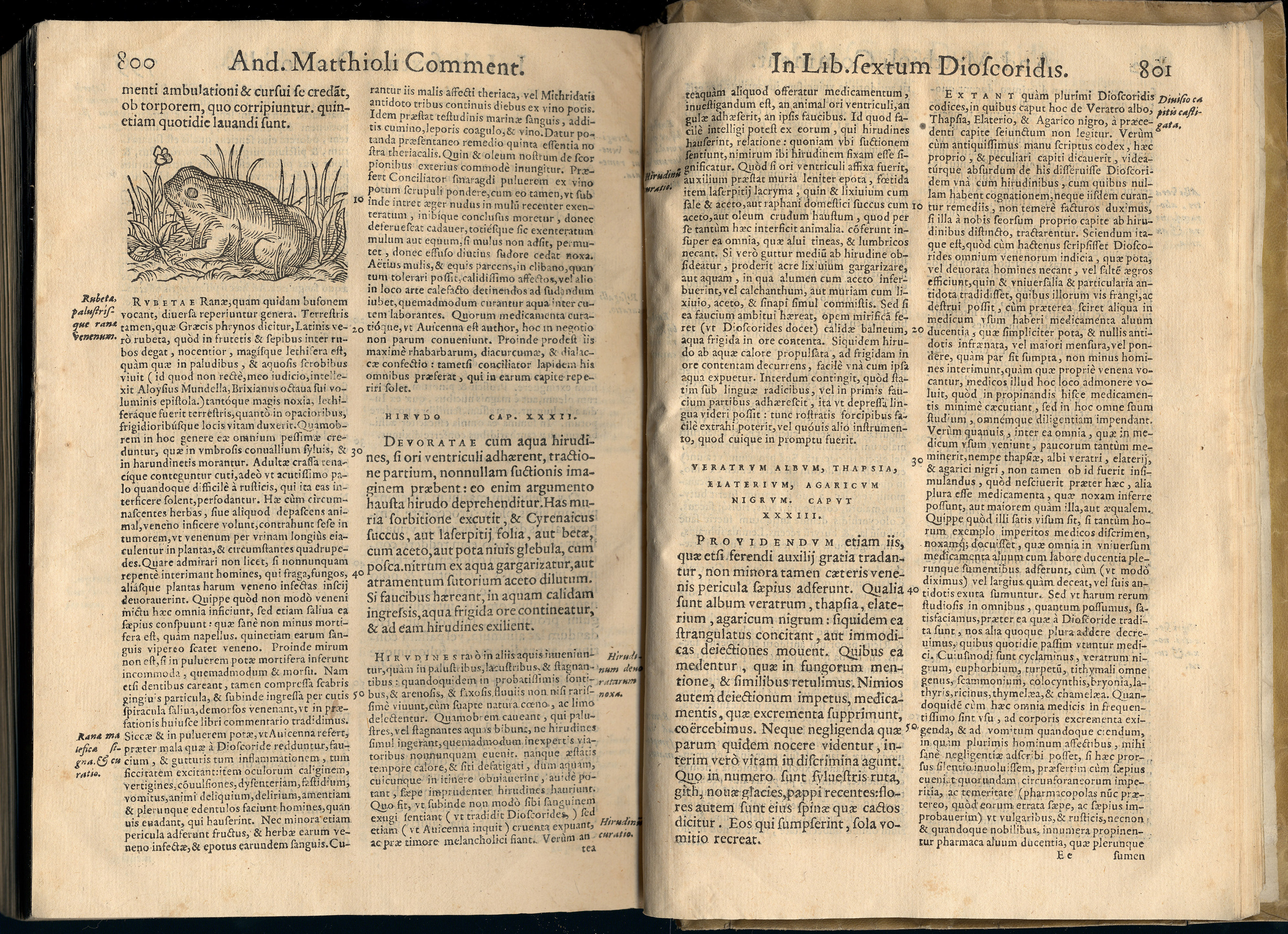 MATTIOLI, Pietro Andrea (1500-1577). – Commentarii denvo aucti : in libros sex Pedacii Dioscoridis… – Lugduni : apud Gabrielem Coterium, 1562. – [108], 837 p. : il. ; 4º (25 cm). – Perg.