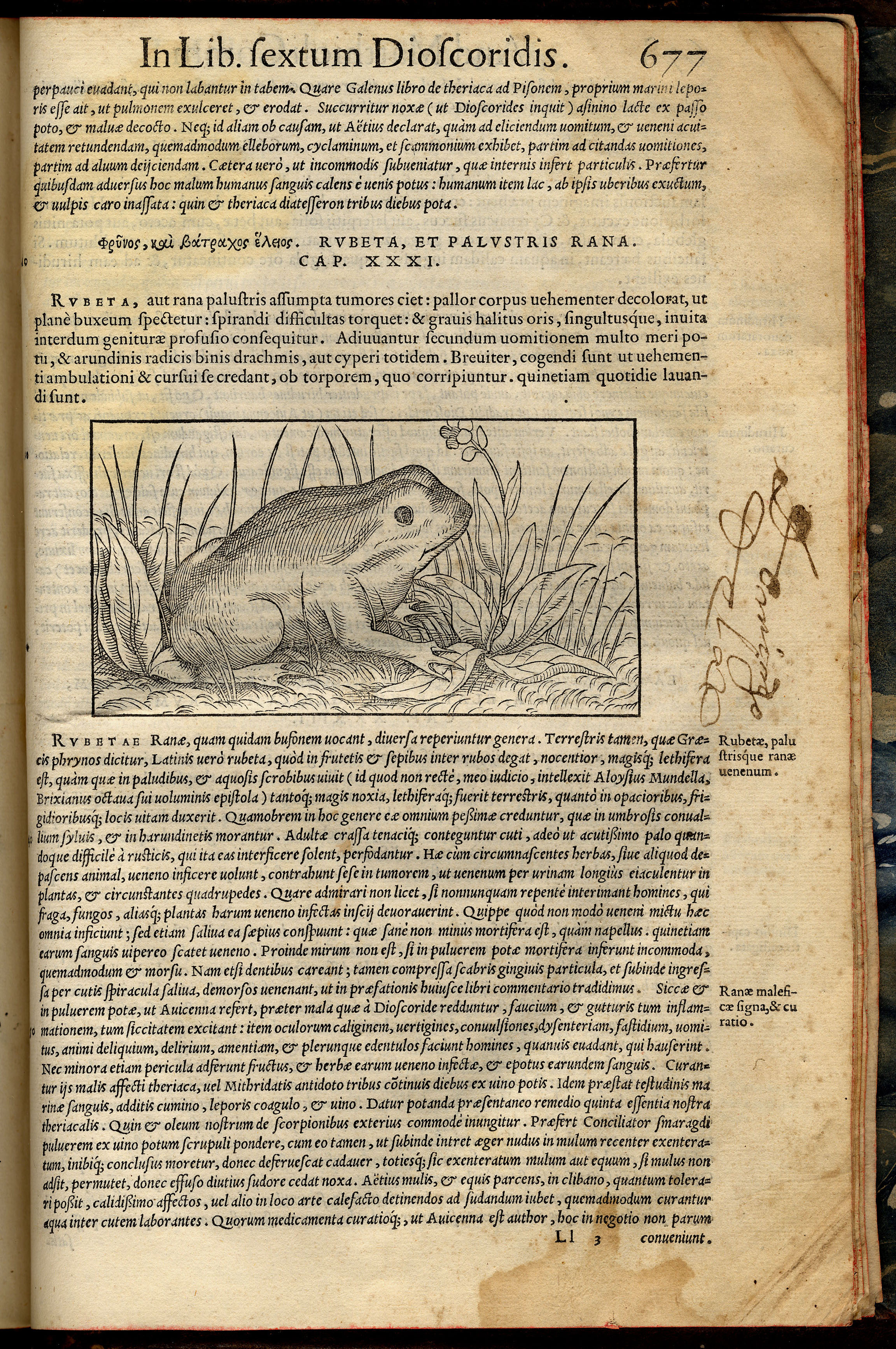 MATTIOLI, Pietro Andrea (1500-1577). – Commentarii… in libros sex Pedacii Dioscoridis… – Goritiae : Iean d’Ogeralles, 1554. – [36], 694 p. : il. ; Fol. (30 cm). – Pasta.