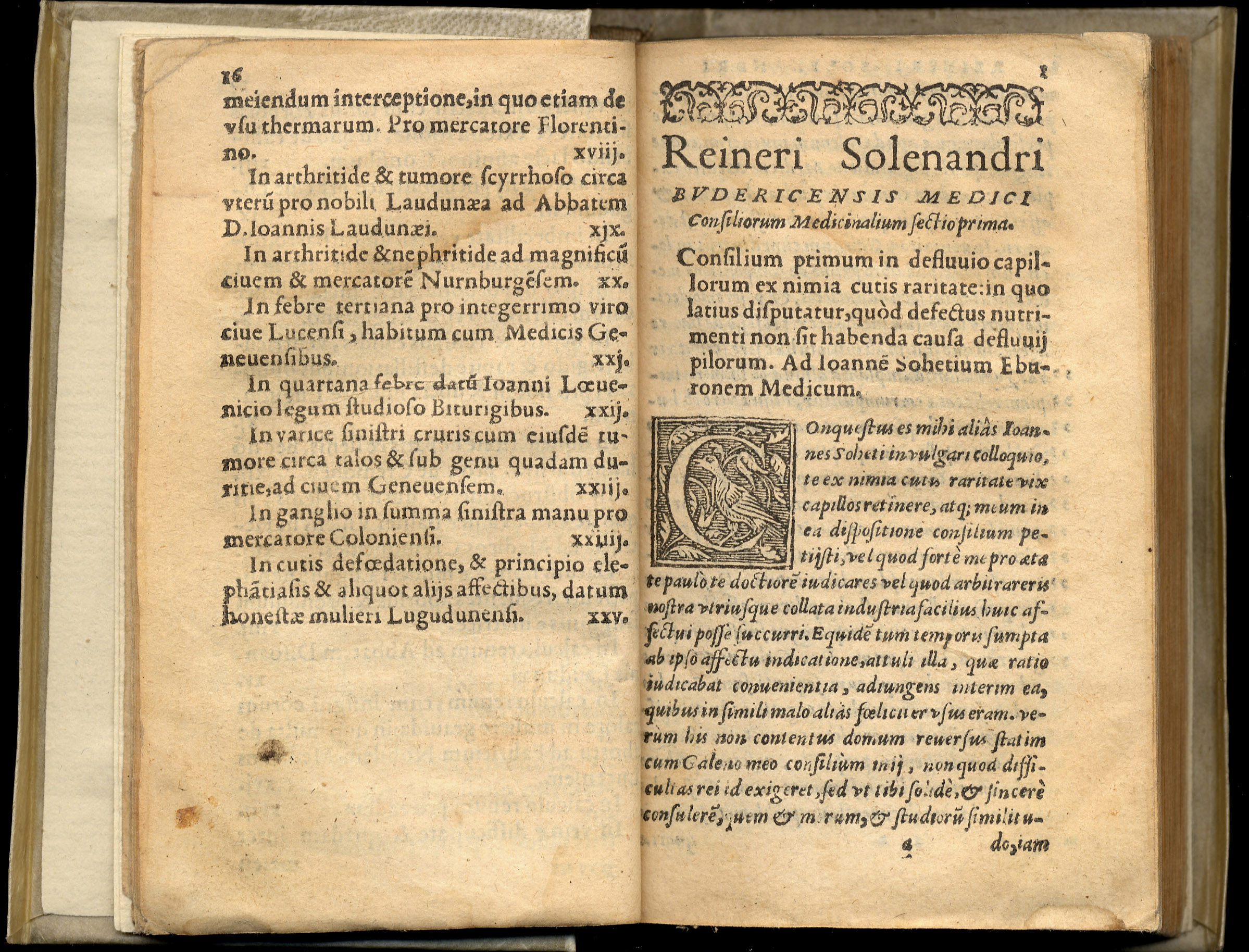 SOLENANDER, Reiner. – Consiliorum medicinalium sectio prima. – Lugduni : apud Ioannem Franciscum de Gabiano, 1558. – [12], 362 p. ; 12º (12 cm). – Perg.