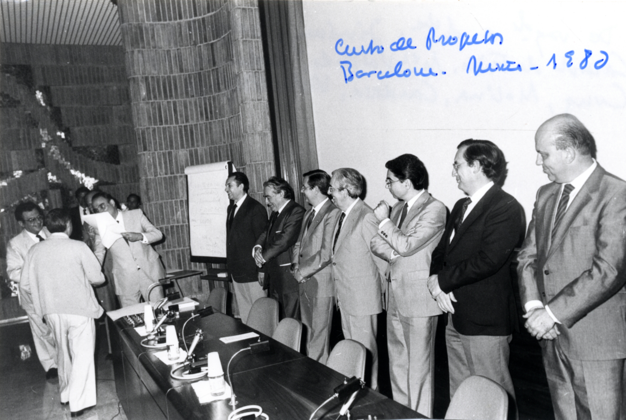 Curso de Progresos en Medicina Infantil, Barcelona 1980. De izquierda a derecha : Dres. Jiménez, Delgado (de espaldas), Casado de Frías, M. Valverde, Rodríguez López, Bueno, Cruz, Molina, Cardesa, Villa Elízaga.