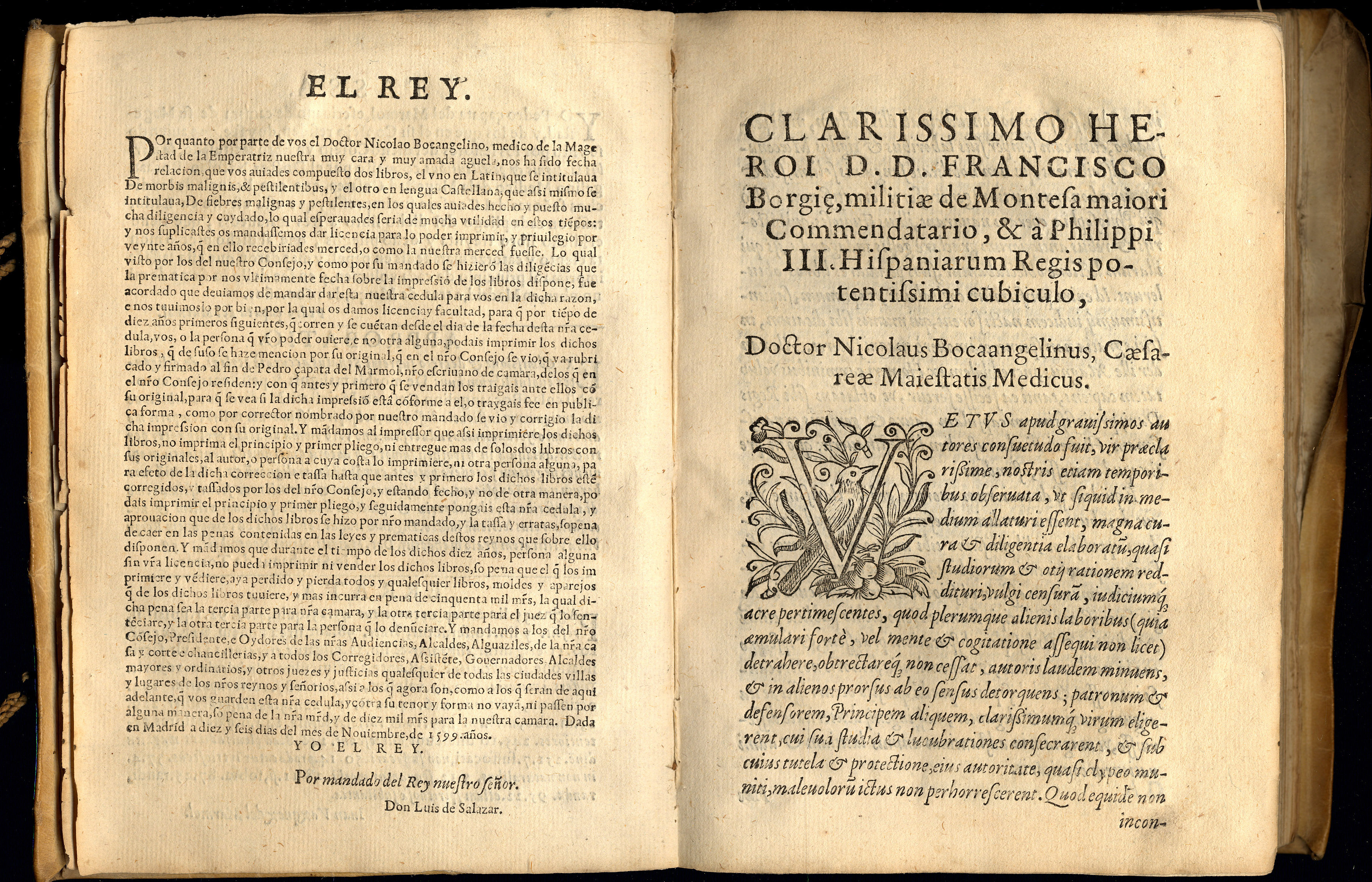 BOCÁNGEL, Nicolás. (Bocangelino) — De morbis malignis et pestilentibus — Madriti : apud Ludovicum Sanchez, 1600. — [6], 251, [24] p. ; 4º [20 cm.]. – Perg.