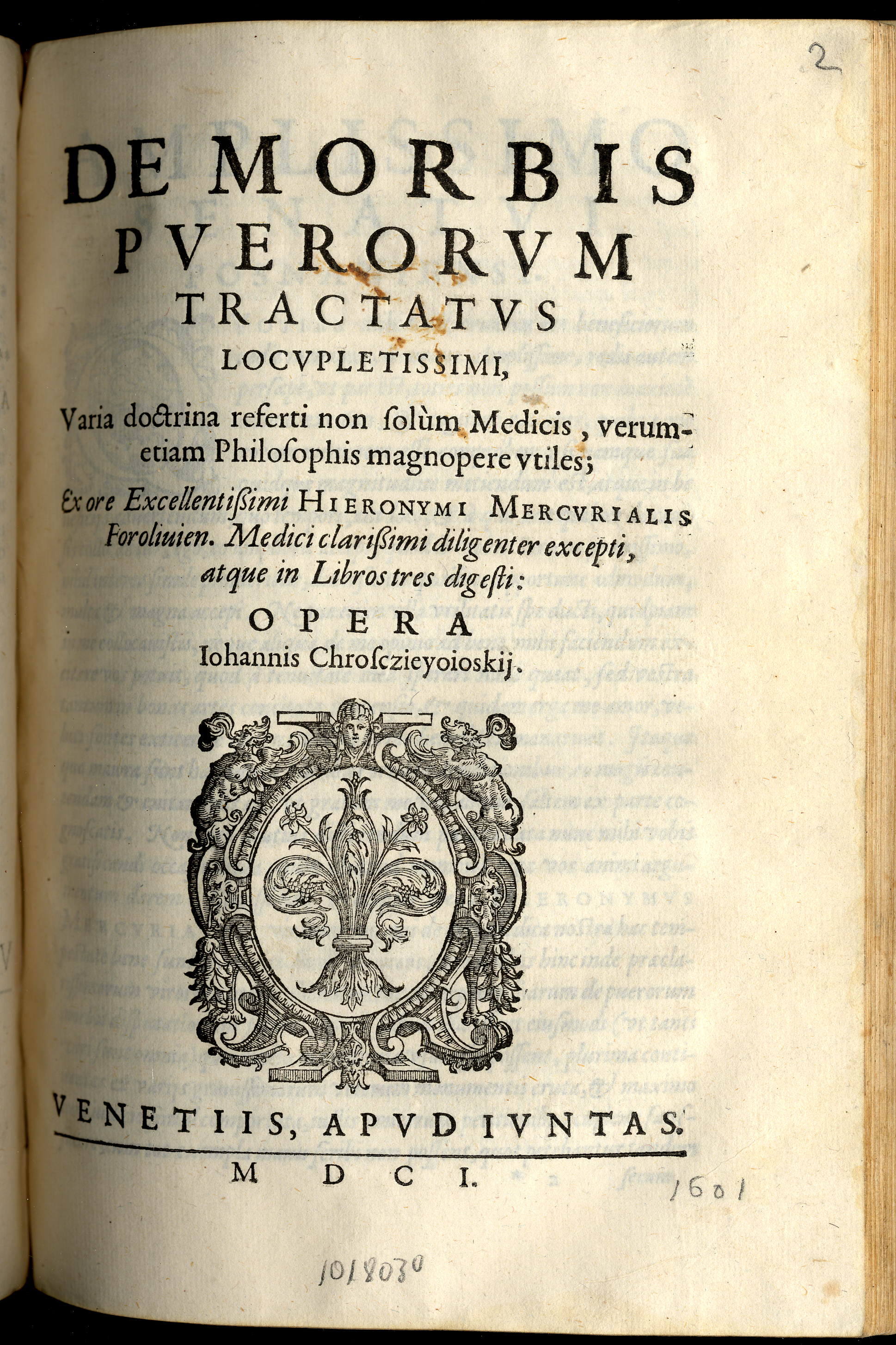 MERCURIALE, Girolamo – De morbis puerorum tractatus…— Venetiis: apud Iuntas, 1601 – [28], 116, [1] p.; 4º