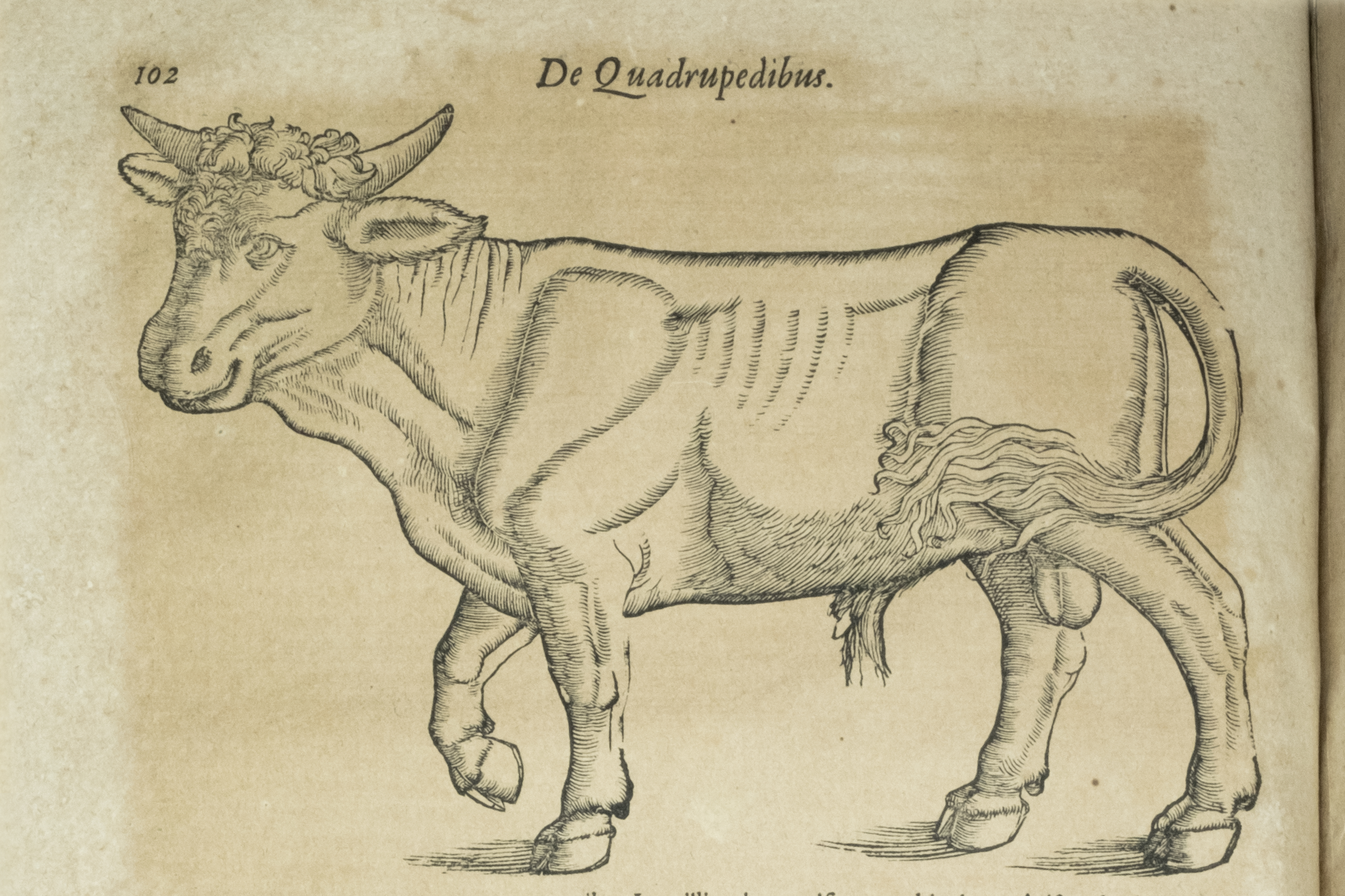 Pertenece al libro: Portada libro “Conr. Gesneri Medici tig vrini Historiæ Animalium liber primus de quadrupedibus viuiparis.” Tomo I
