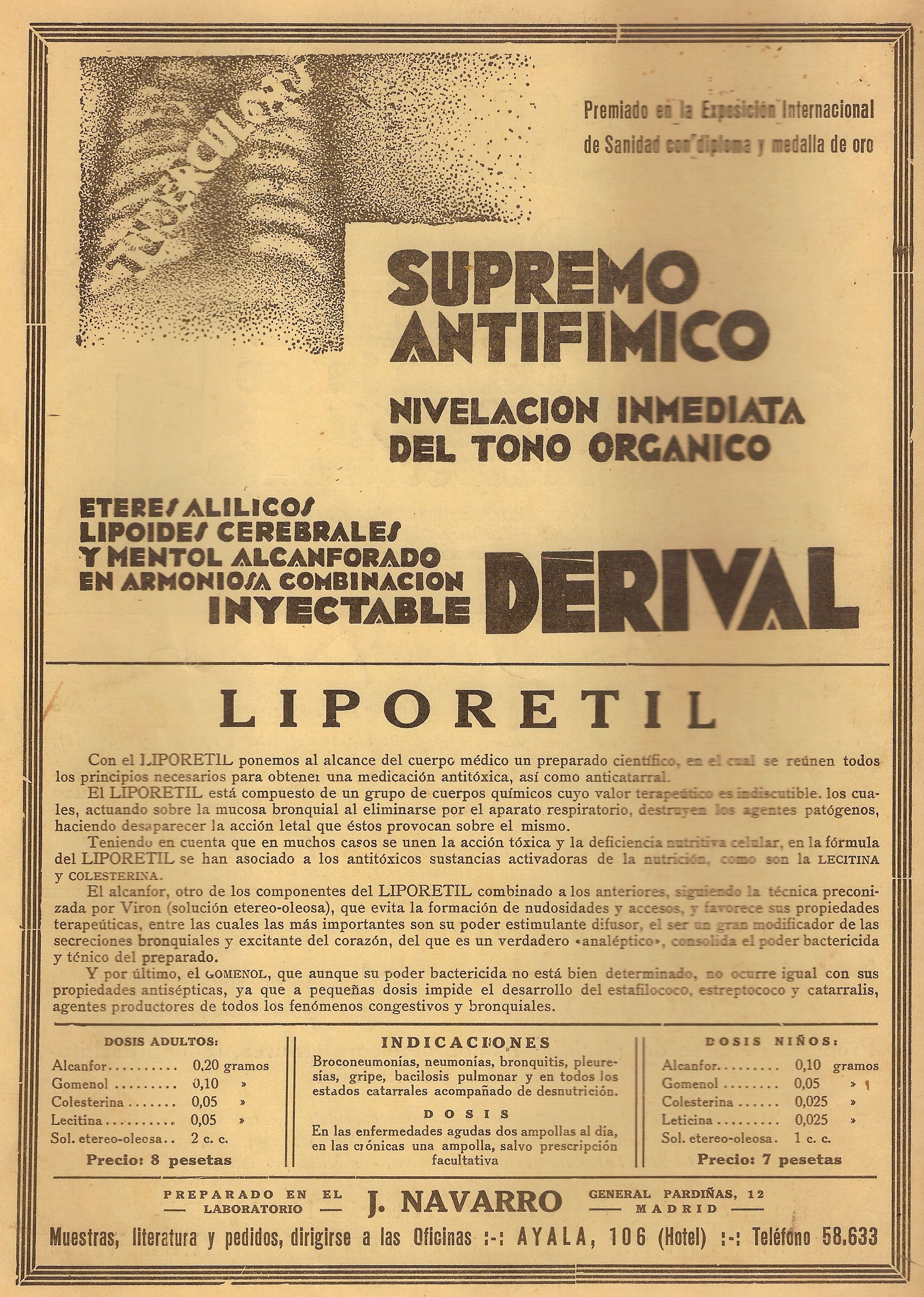 Derival. Antifímico. J. Navarro. Madrid. Archivos de Medicina, Cirugía y Especialidades. 9 de diciembre de 1933.