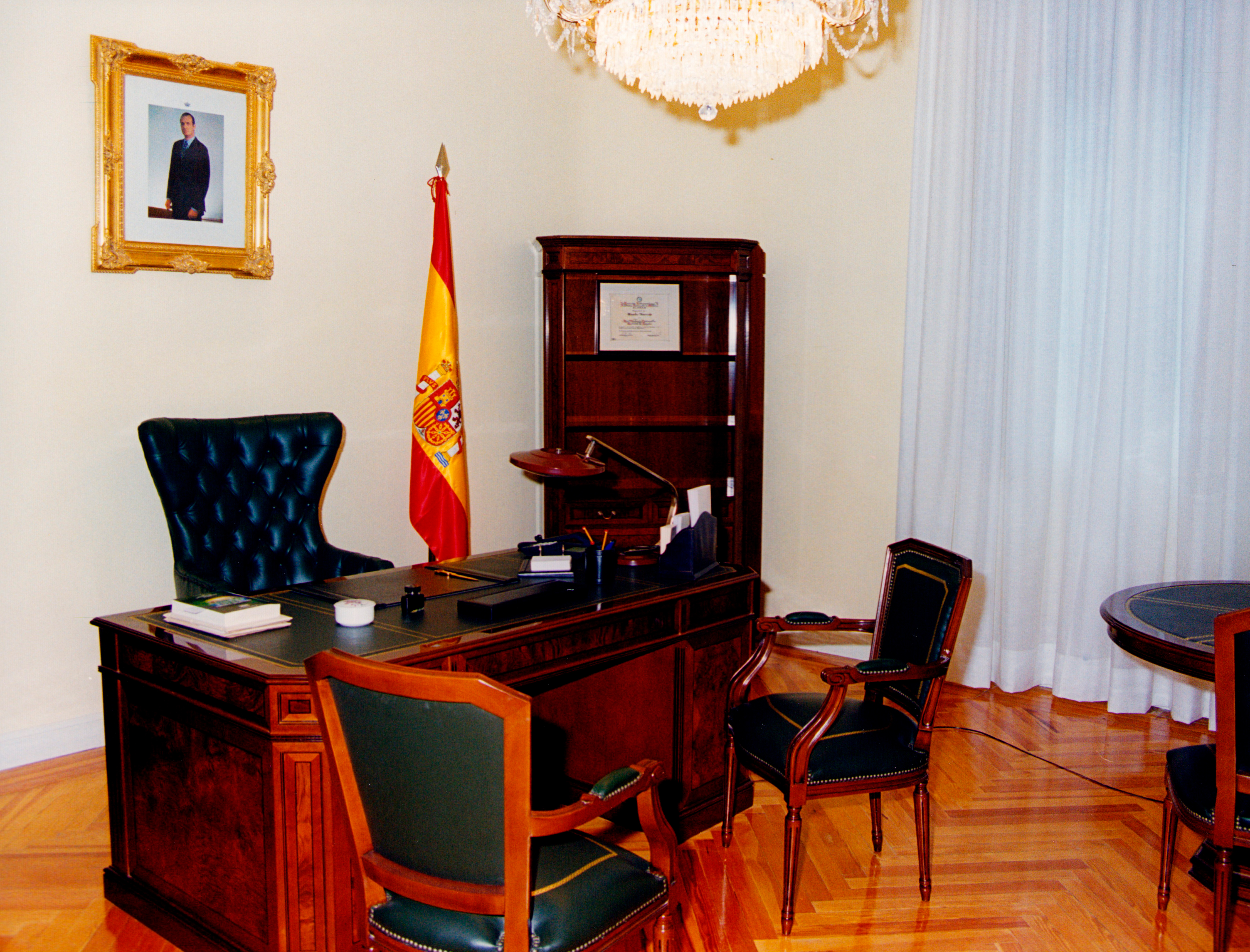 Vista parcial de un despacho de la Real Academia Nacional de Medicina presidido por el retrato de S.M. el Rey Juan Carlos I (2000). RANME. Banco de Imágenes de la Medicina Española, id. 41376
