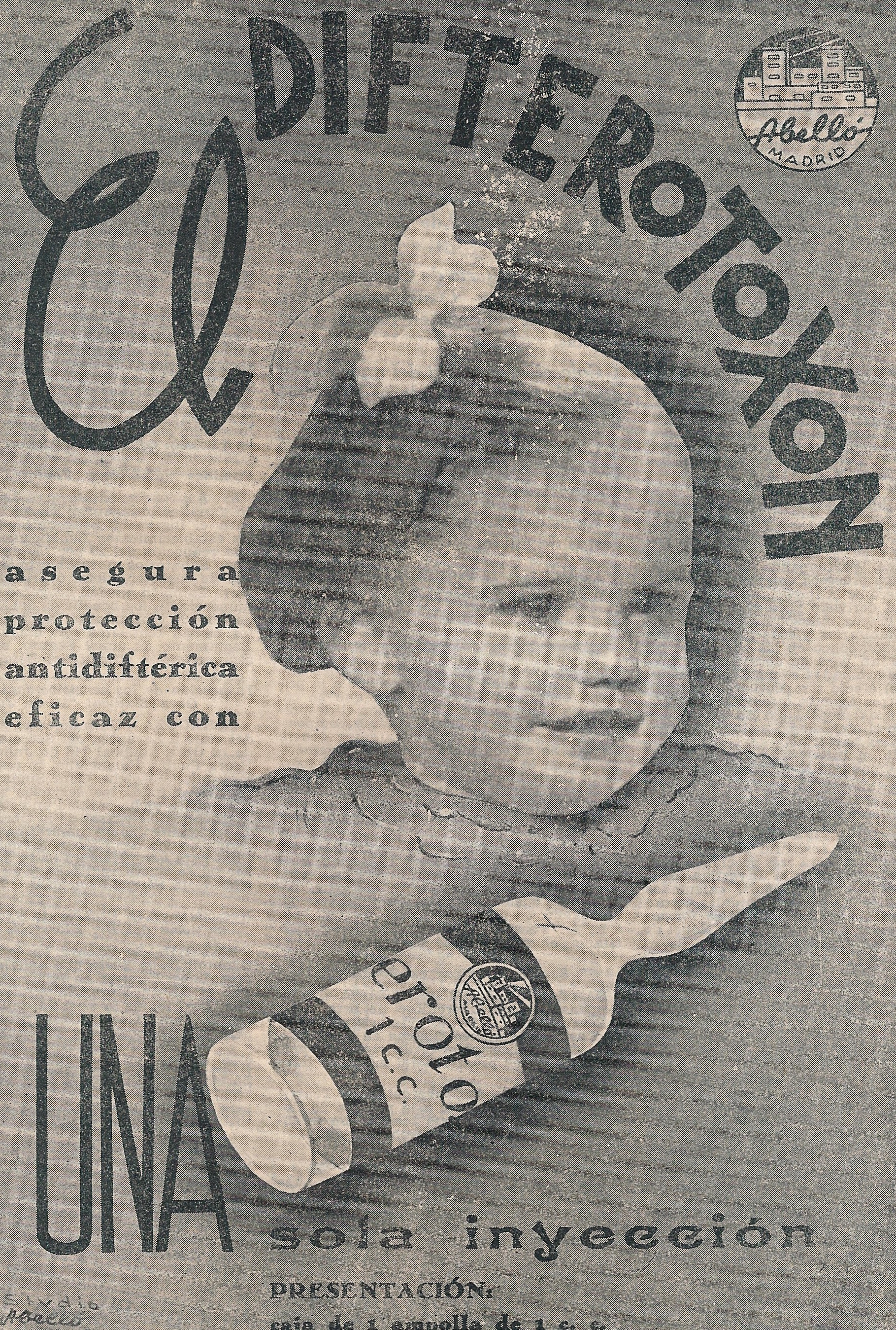 Difterotoxón. Vacuna antidiftérica, Abolló. Industrial Farmacéutica Cantabria S.A. Santander. Publicidad aparecida en la revista Gaceta médica Española. Año 18, número 5, 1944.