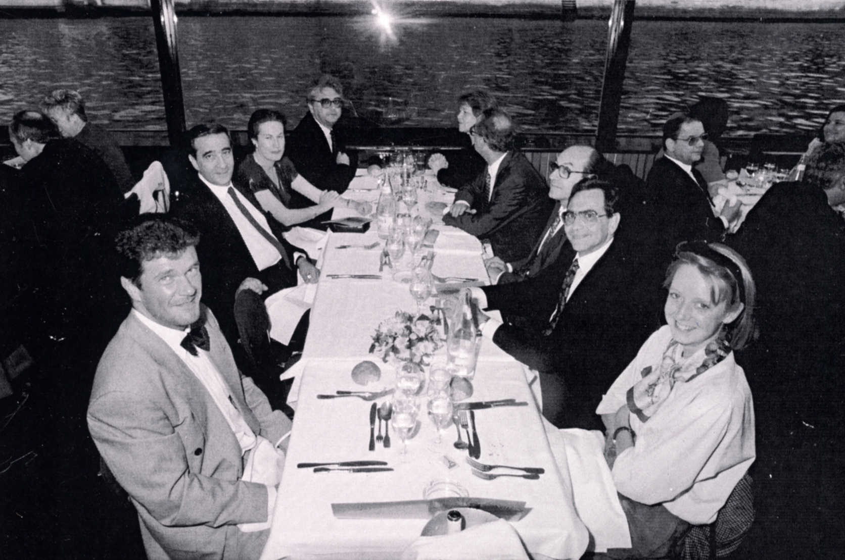 Fila izquierda : ?, Prof. Alfredo Gallart, Prof. Blanco Quirós; fila derecha : ?, Prof. Angel Nogales; al fondo a la derecha, Prof. M. Bueno.