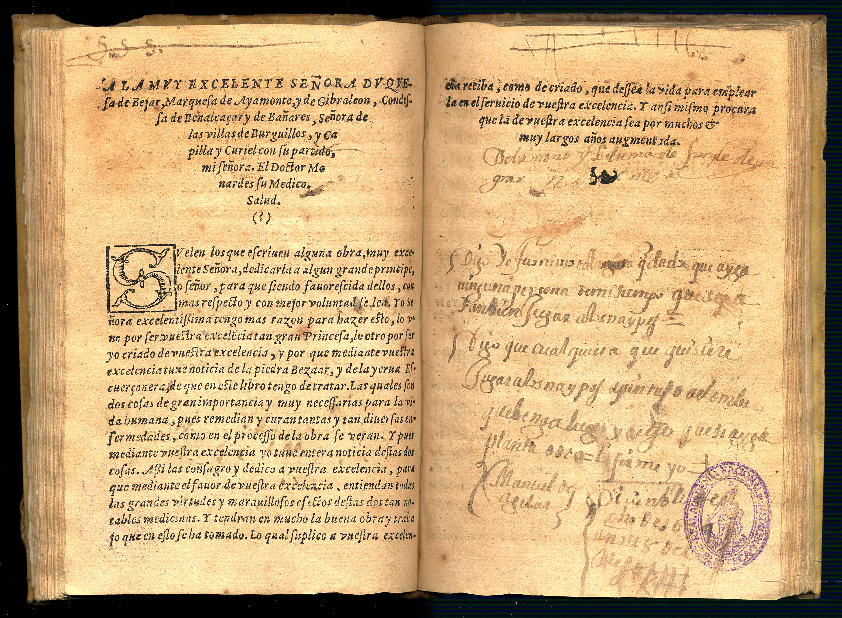 Dos libros, el uno que trata sobre todas las cosas que traen de nuestras Indias Occidentales, que sirven al uso de la medicina, y el Otro que trata de la Piedra Bezoar, y de la Yerva Escuerçonera.