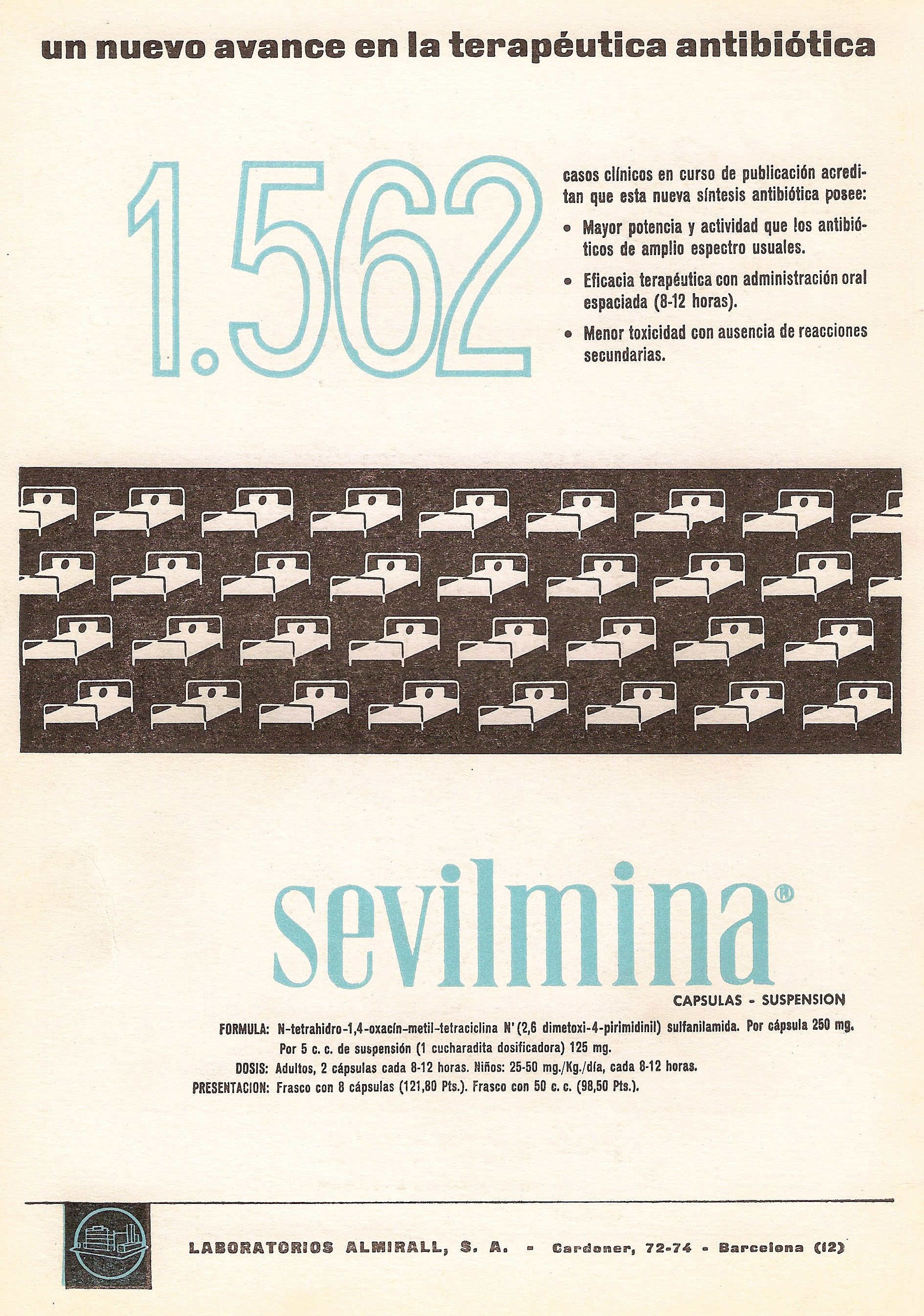Sevilmina. Nuevo avance en la terapéutica antibiotica. Laboratorios Almirall, Barcelona. Archivos de la Facultad de Medicina de Madrid, 1965.