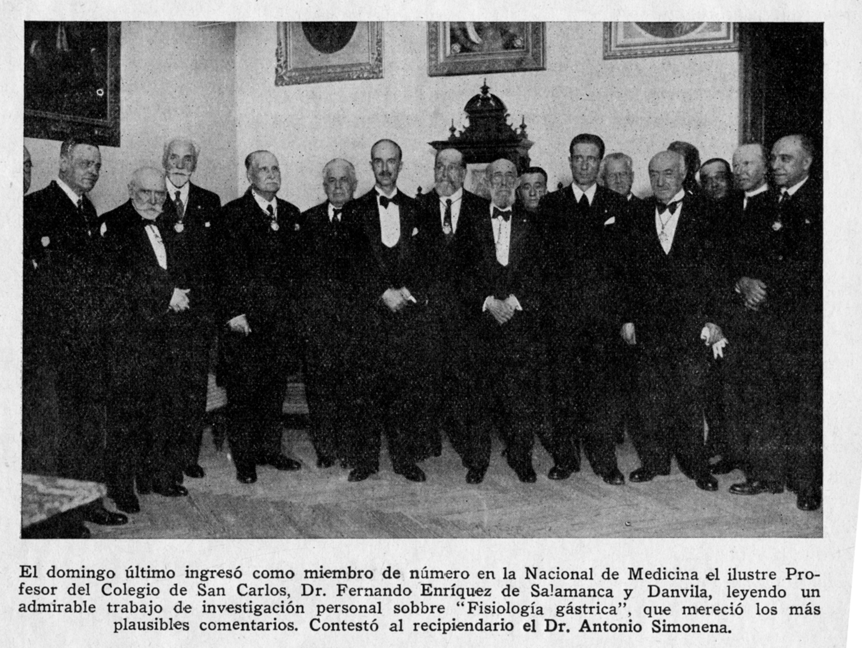 Toma de posesión del Dr. D. Fernando Enríquez de Salamanca y Danvila (1890 – 1966) como Académico de la Academia Nacional de Medicina. 23 Jun. 1935