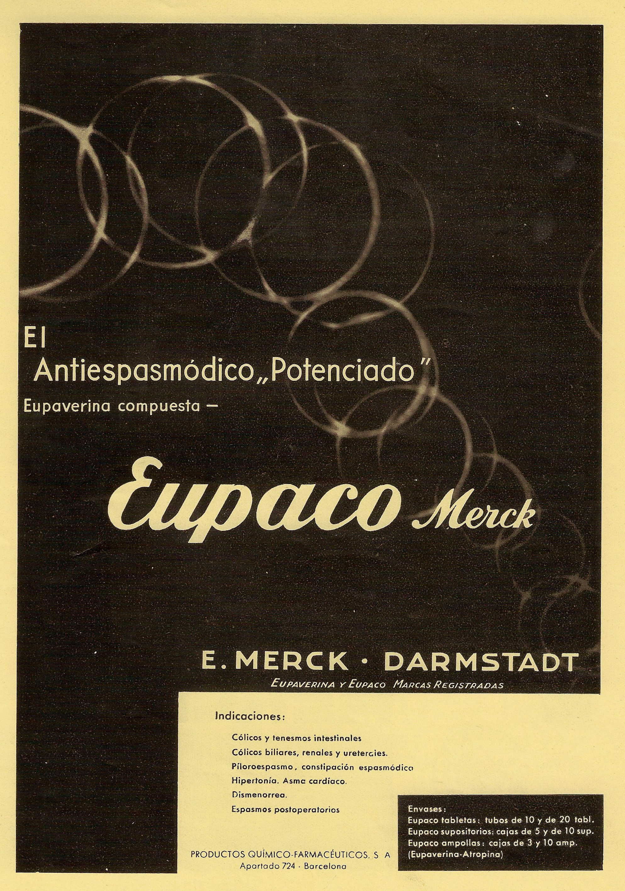 Eupaco. Antiespasmódico potenciado. E. Merck. Darmstadt. Archivos de Medicina, Cirugía y Especialidades, 21 abril 1934.
