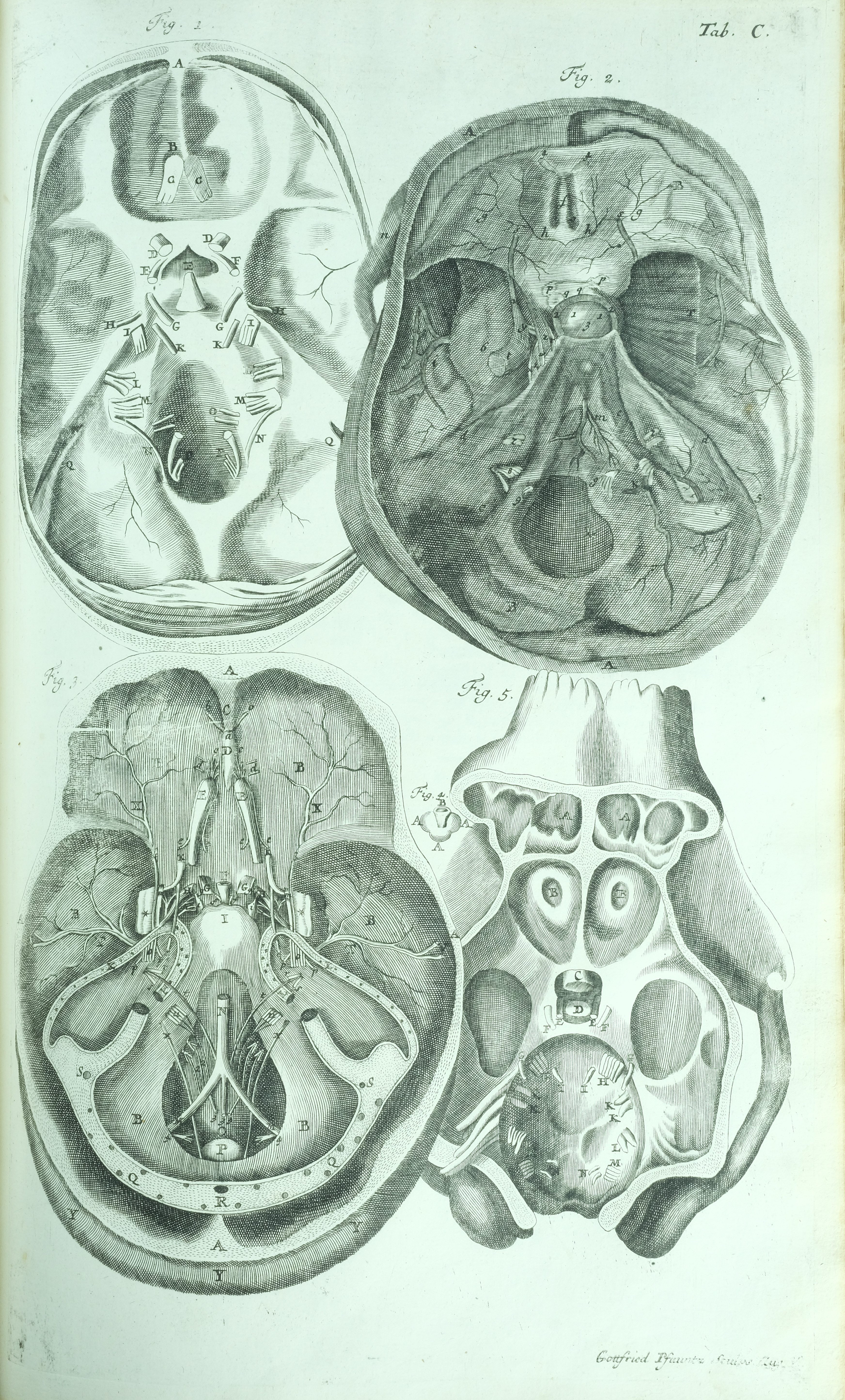 Figura 1. Ex Clarill. Thomâ Willifiô. Exhibet Cranii humani bafin interiorem.