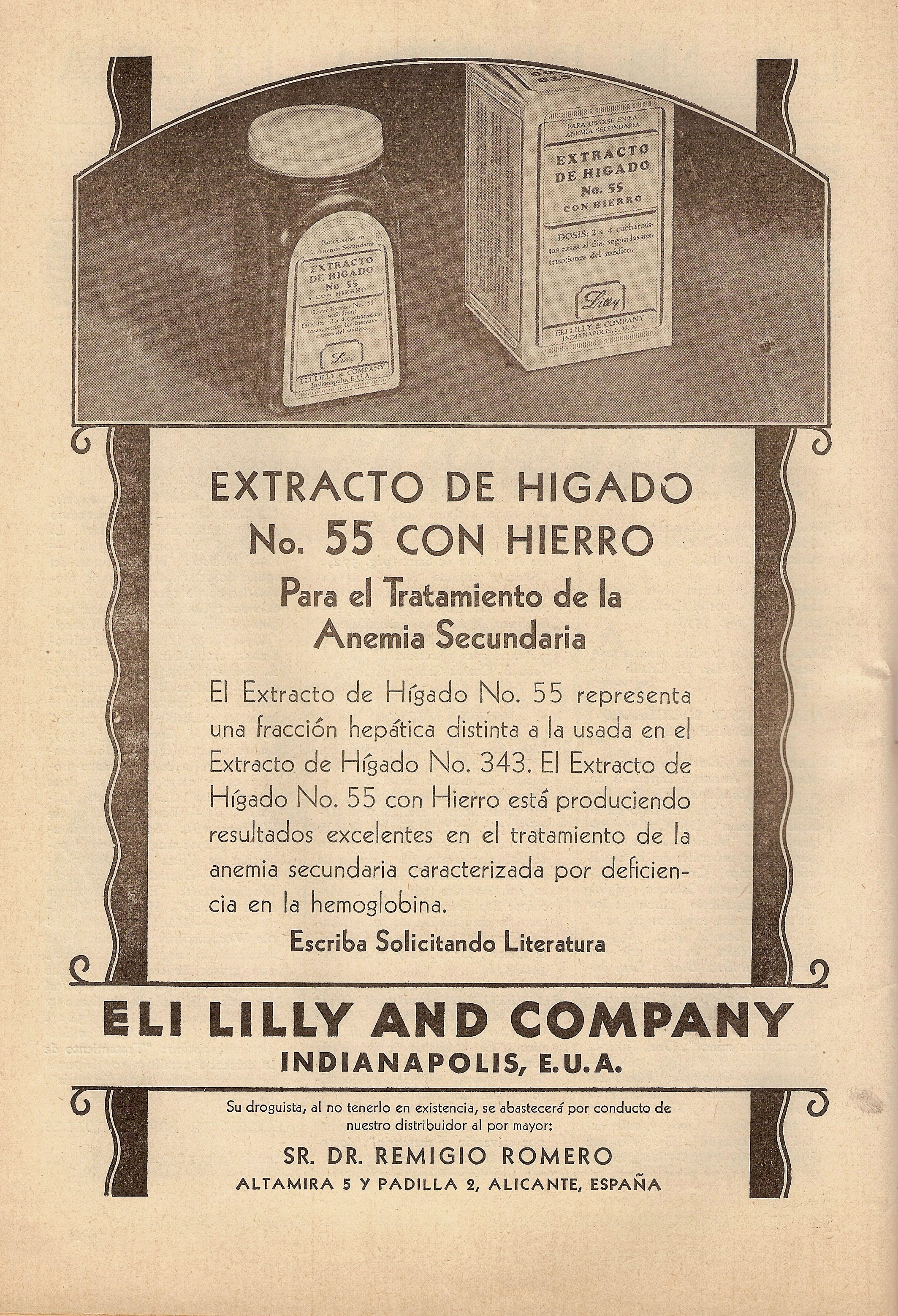 Extracto de hígado. Tratamiento de la anemia secundaria. Eli Lilly Compani. La Medicina Íbera, 11 de abril de 1931.