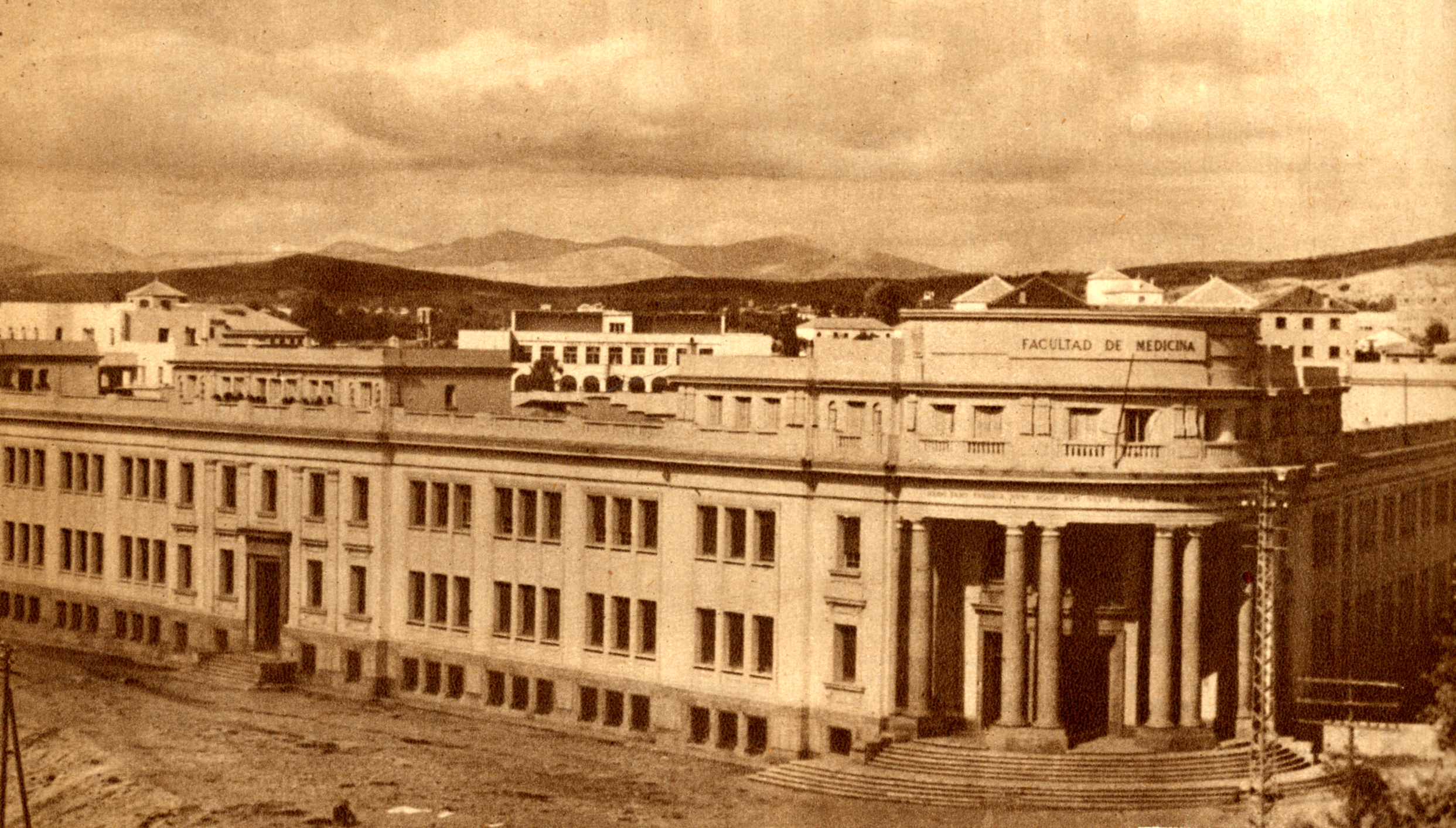 Vista general del edificio de la Facultad de Medicina de Granada. Consejo General Colegios Médicos de España, Vol. I, nº 5, Dic. 1946, p. 50