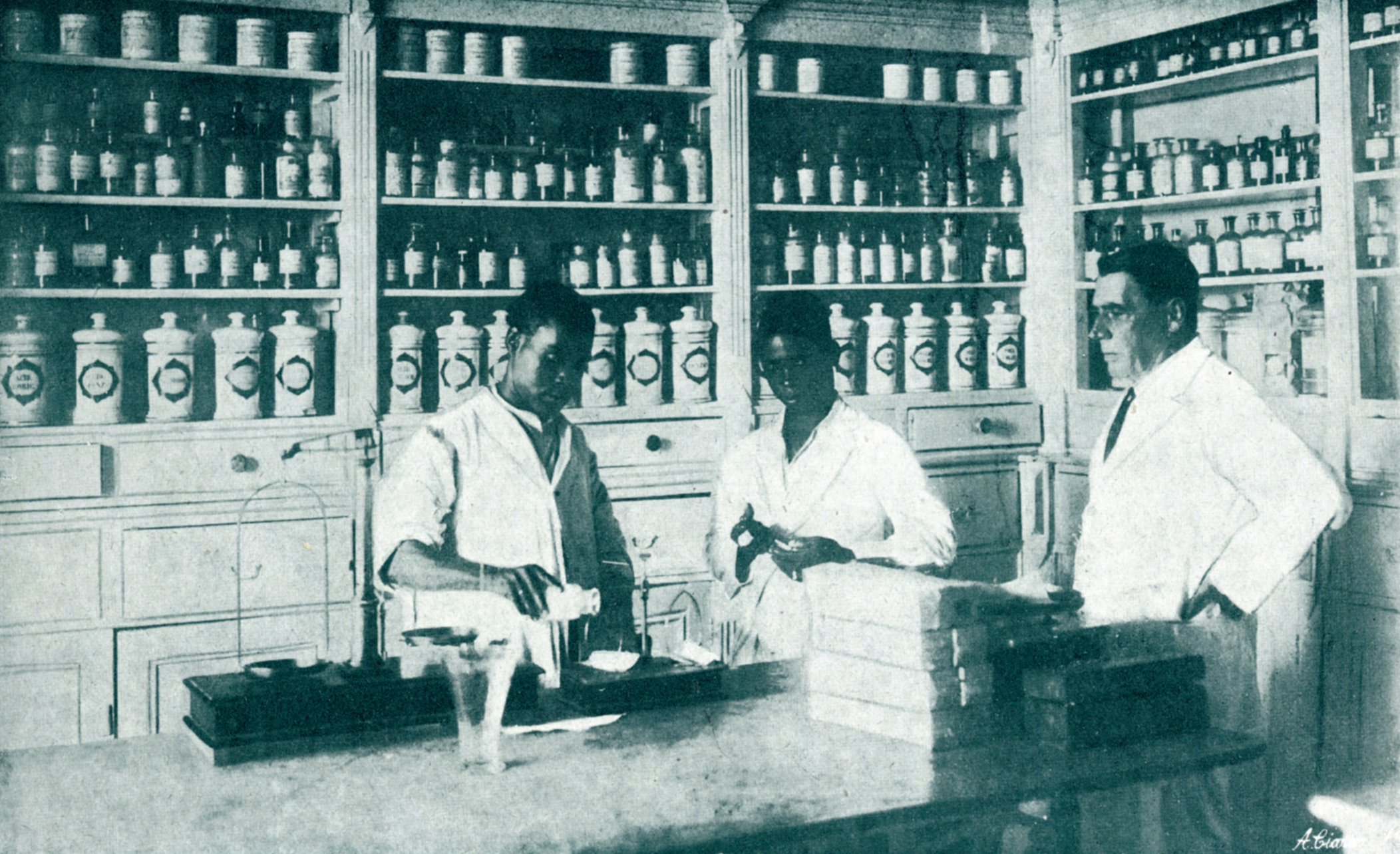 Fernando Poo: Farmacia del antiguo hospital de Santa Cristina, en Santa Isabel. Utilización del elemento natural del país en la labor sanitaria.