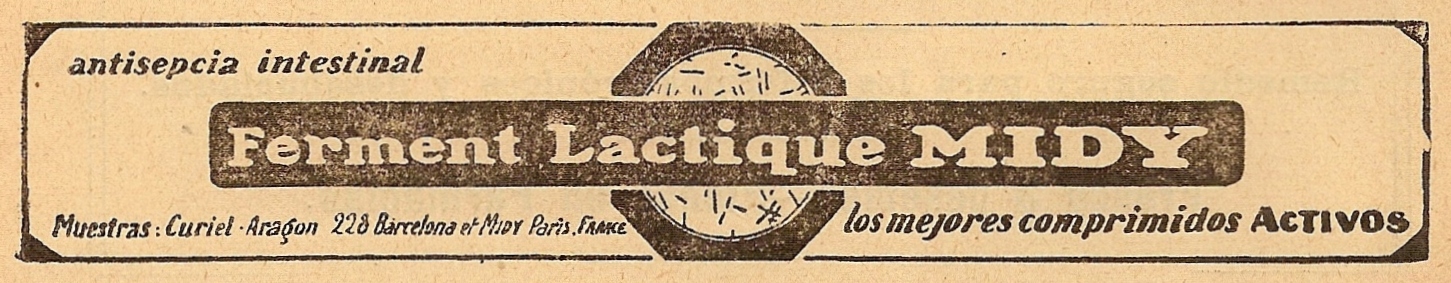 Ferment Lactique MIDY. Antisepsia intestinal. Laboratorios Midy. París. Publicidad frecuente en revistas. 1918.
