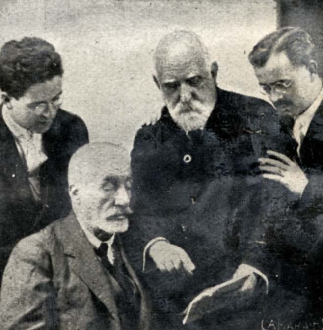 Los Dres. D. Angel Pulido y D. Jaime Ferrán comentando el número de vacunados en la campaña de 1919 con la vacuna descubierta por el segundo contra la tuberculosis.