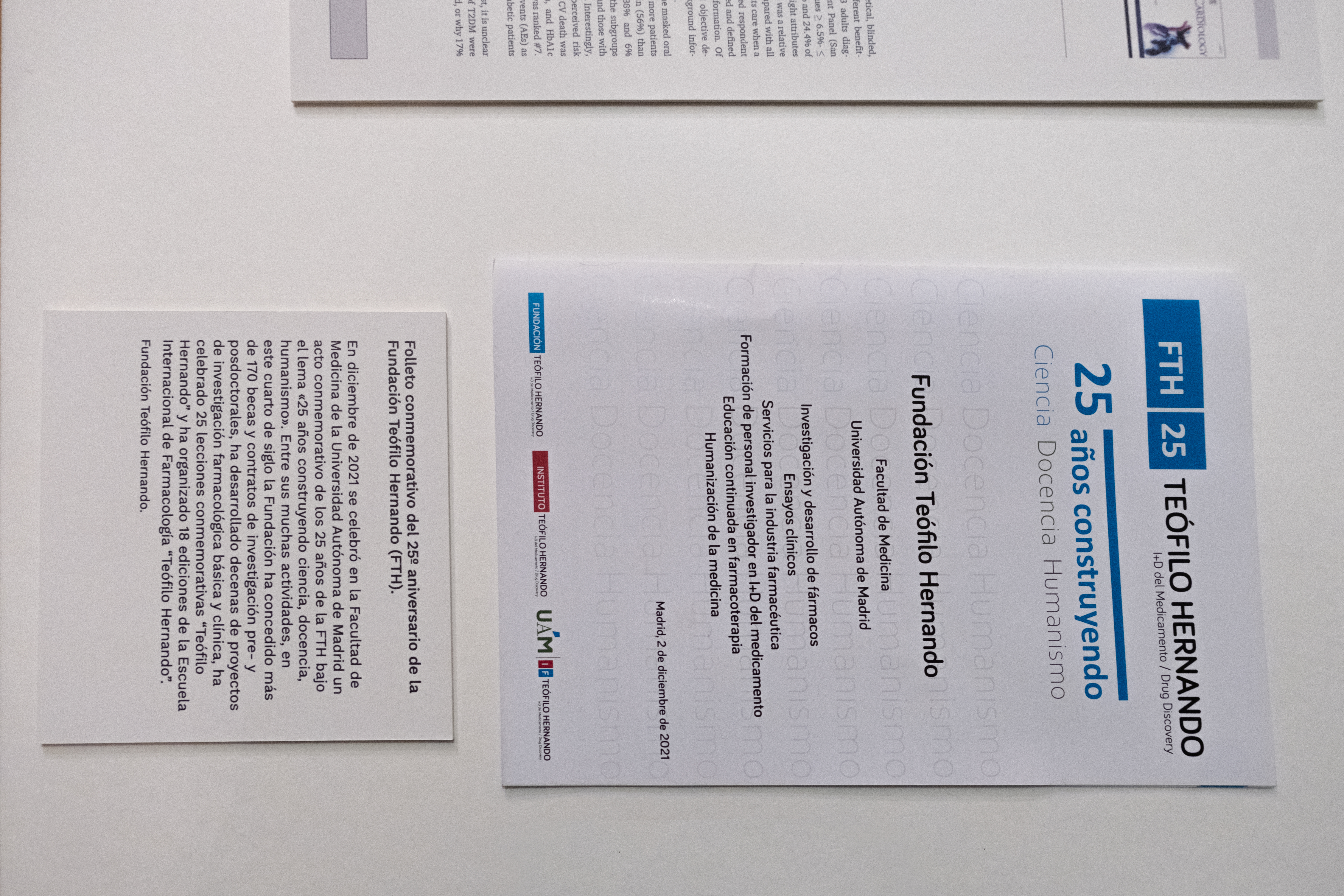 En diciembre de 2021 se celebró en la Facultad de Medicina de la Universidad Autónoma de Madrid un acto conmemorativo de los 25 años de la FTH bajo el lema <25 años construyendo ciencia, docencia, humanismo». Entre sus muchas actividades, en este cuarto de siglo la Fundación ha concedido más de 170 becas y contratos de investigación pre- y posdoctorales, ha desarrollado decenas de proyectos. de investigación farmacológica básica y clínica, ha celebrado 25 lecciones conmemorativas “Teófilo Hernando” y ha organizado 18 ediciones de la Escuela Internacional de Farmacología “Teófilo Hernando”. Fundación Teófilo Hernando.