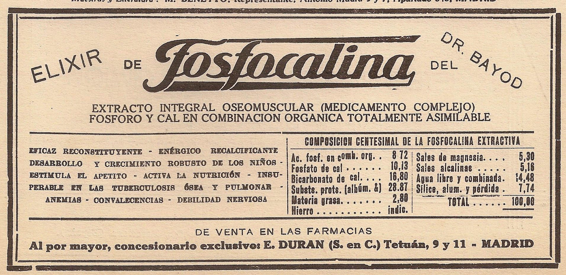 Fosfocalina del Dr.Bayod. Reconstituyente. La Medicina Íbera, 11 de abril de 1931.